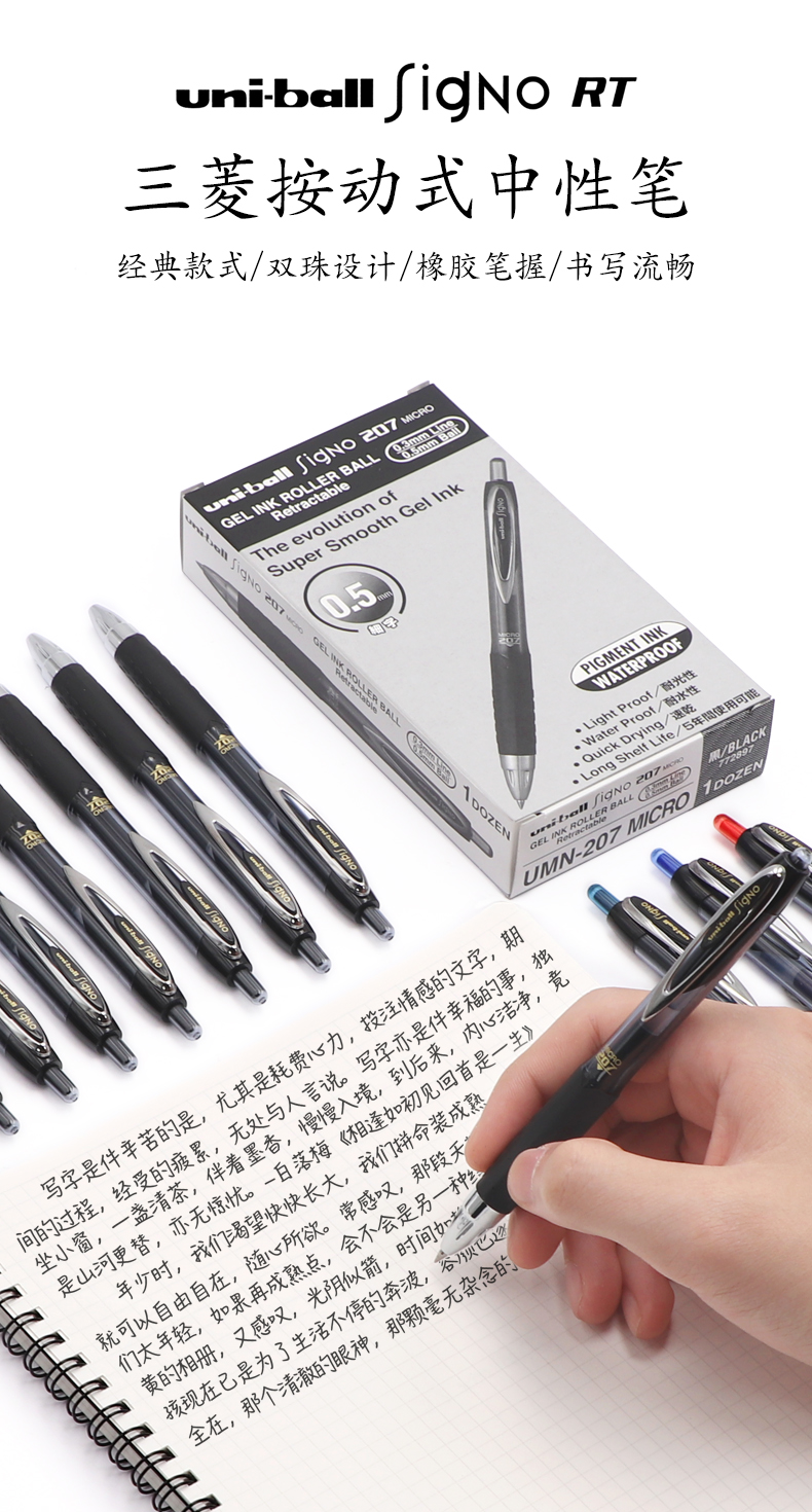 三菱UMN-207按动中性笔0.5mm12支/盒(支)黑色