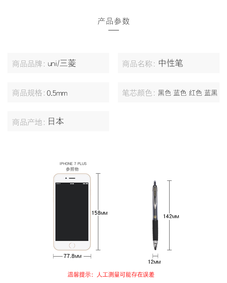 商品标题:三菱UmN-207中性笔0.5mm黑芯12支/盒(支)
