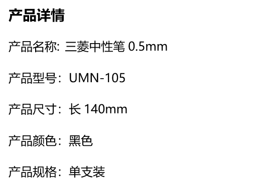 商品标题:三菱UmN-105中性笔0.5mm黑芯12支/盒(支)