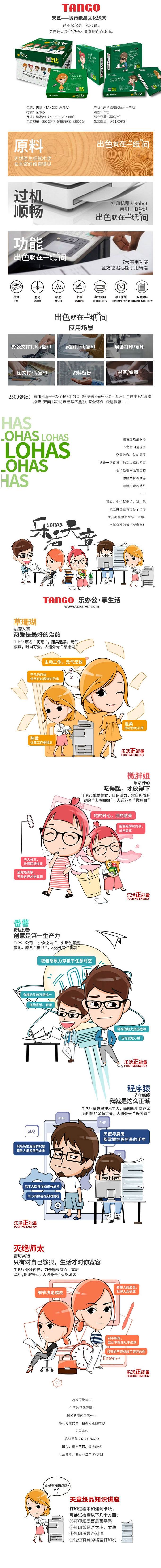 商品标题:天章(TANGO)乐活天章A4打印纸复印纸 80g 500张/包 5包/箱(共2500张)(单位:箱)