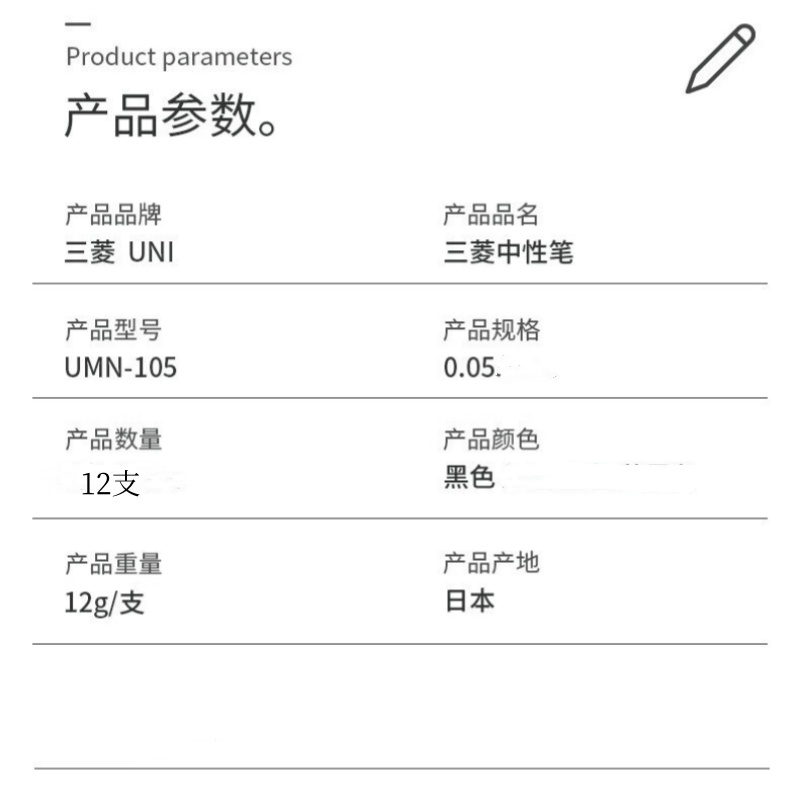 商品标题:三菱 UmN-105 中性笔 0.5mm 黑芯12支/盒 (单位:盒)