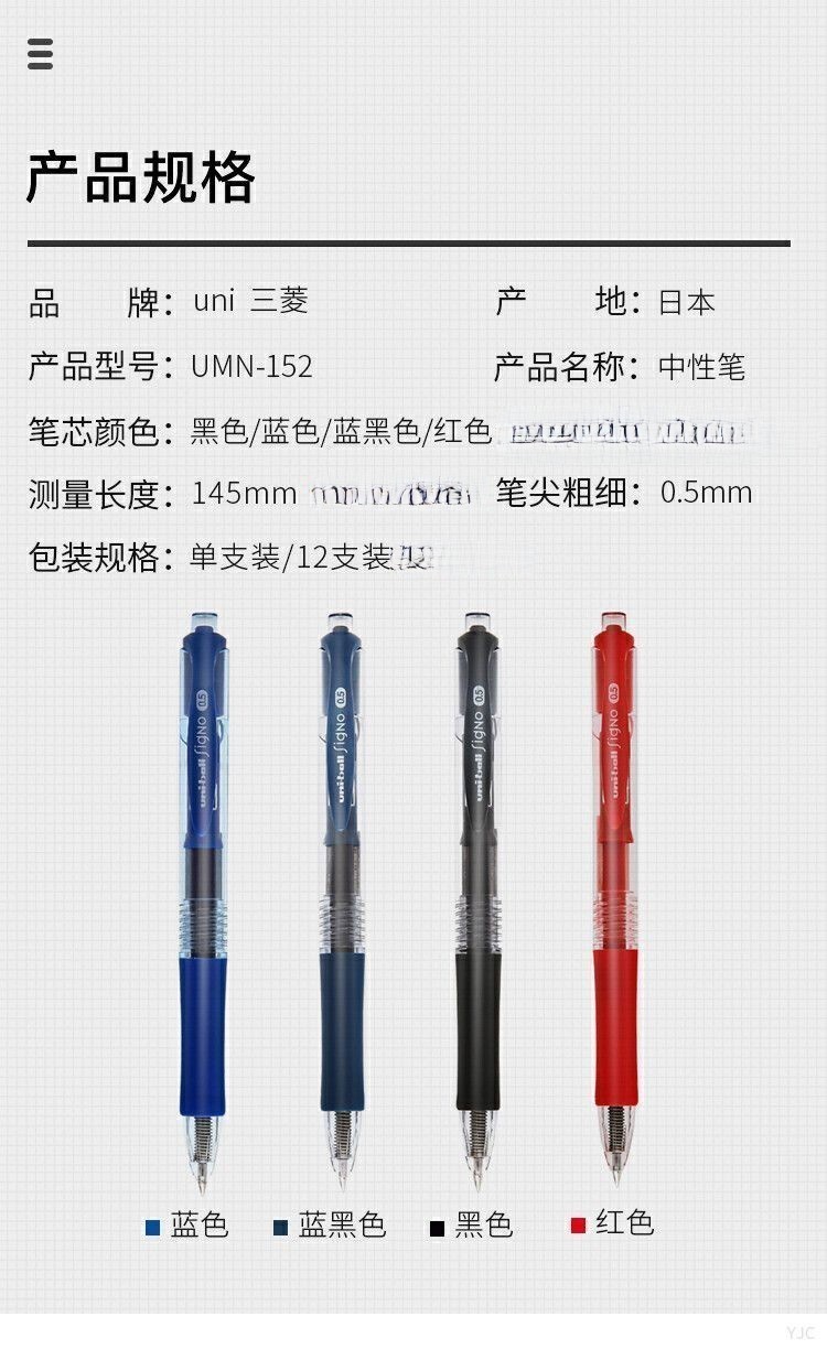 商品标题:三菱UMN-152中性笔红色0.5mm(支)
