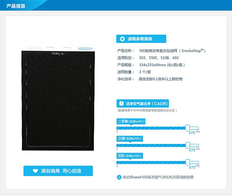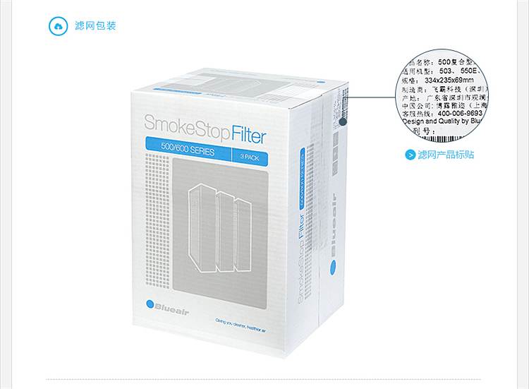 商品标题:布鲁雅尔SmokeStop复合型滤网适用于500/600系列空气净化器 (套)