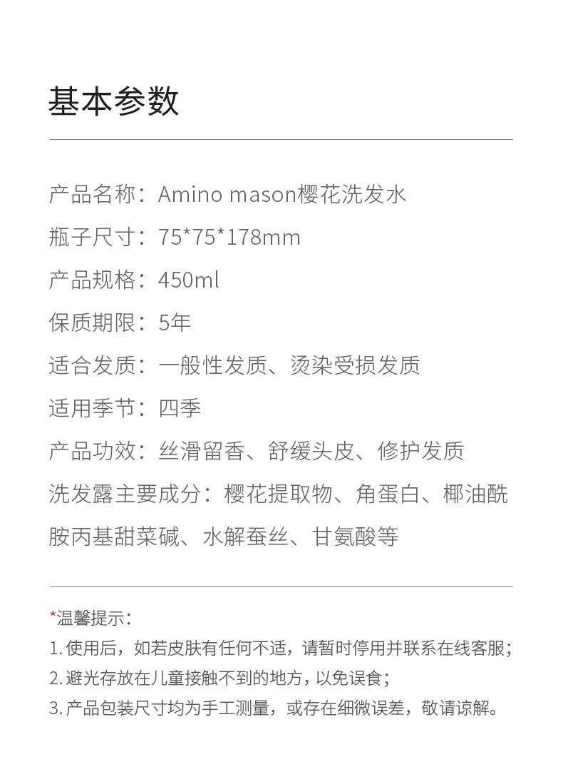 商品标题:氨基研植物精粹润泽樱花滋养型洗发水 450ml(瓶)