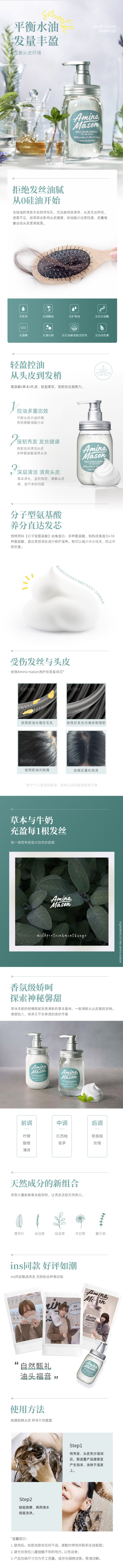 Amino mason 阿蜜浓梅森平衡控油蓬松洗发水450ml(单位:瓶)氨基酸 无硅油 去屑去油 止痒 清爽