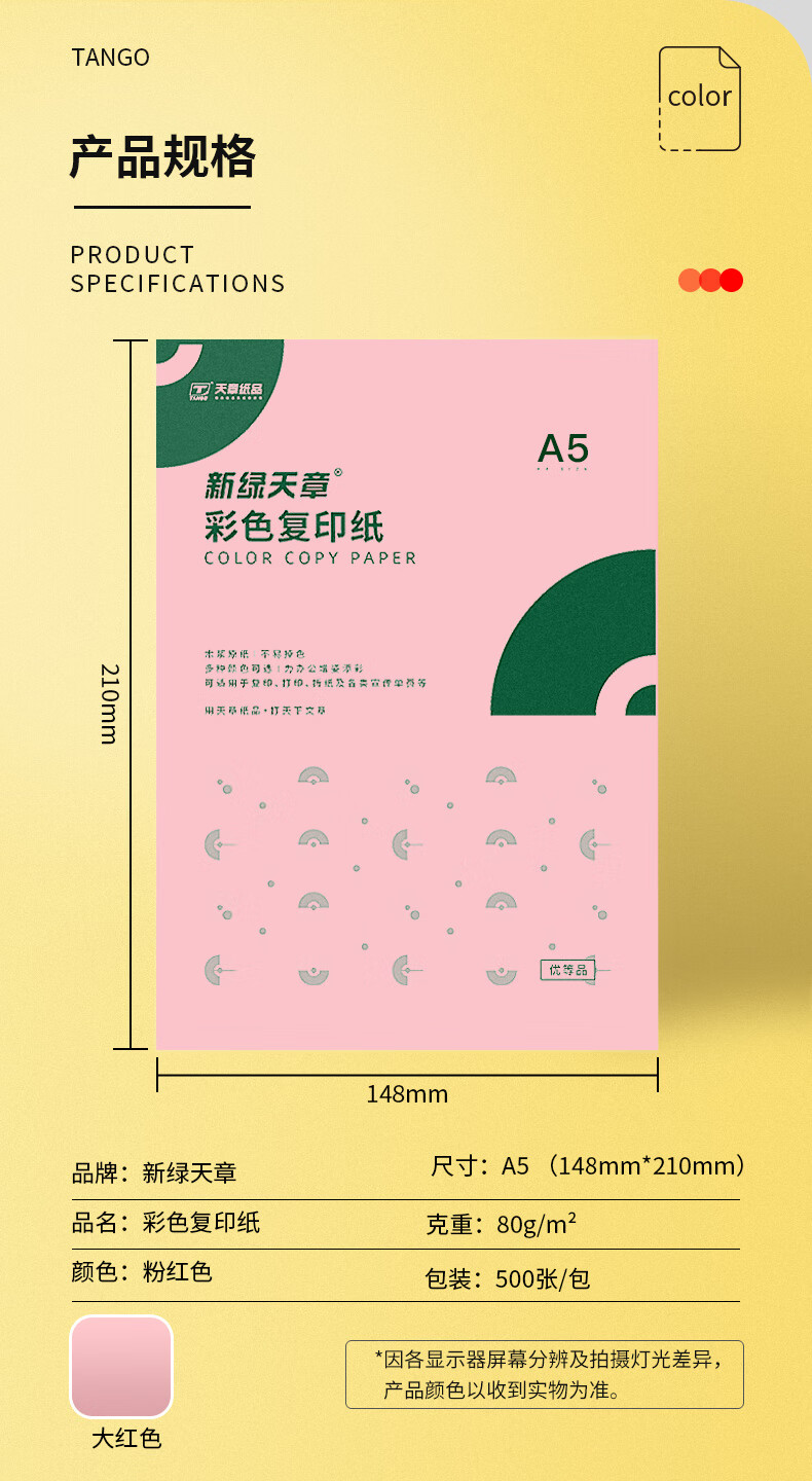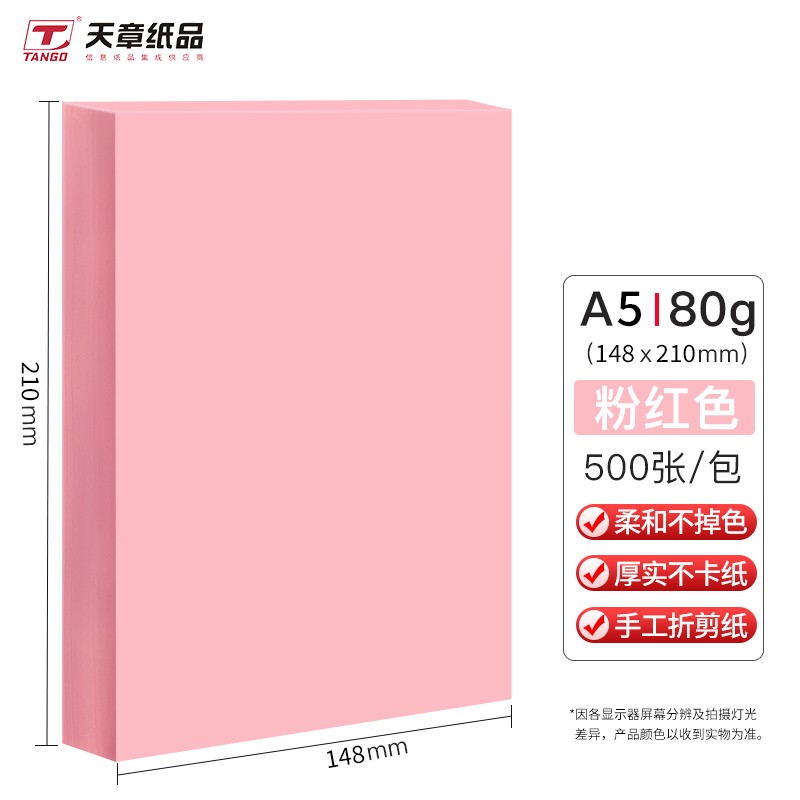 商品标题:新绿天章P66492 A5彩色复印纸 粉红色 80g 500张/包(单位:包)