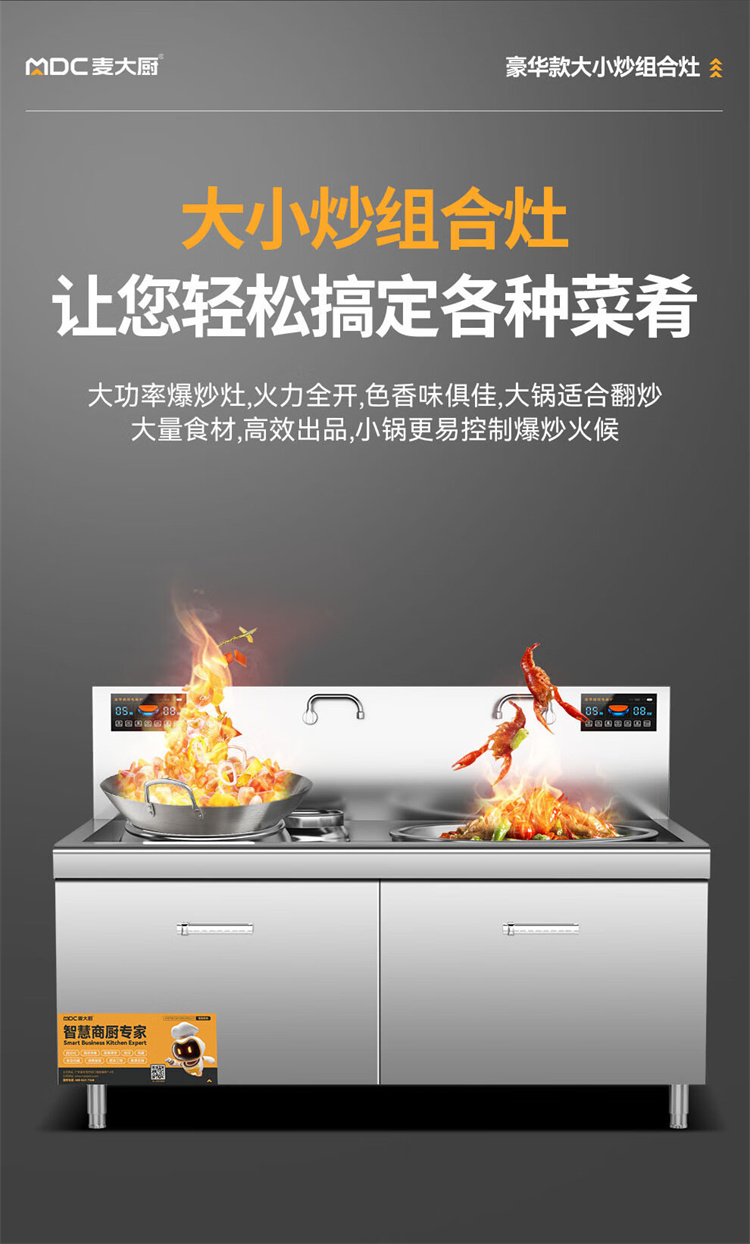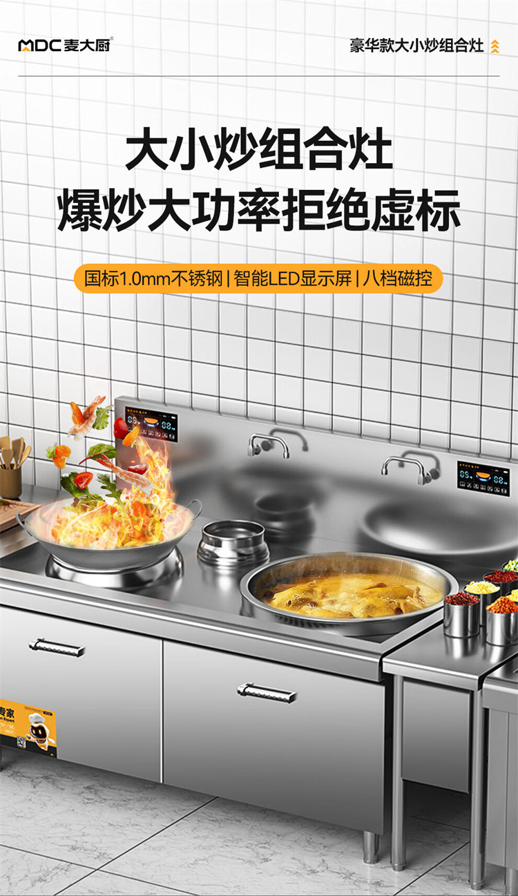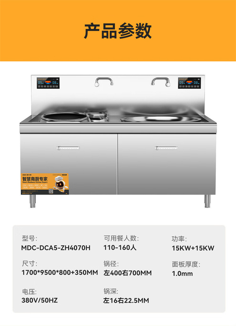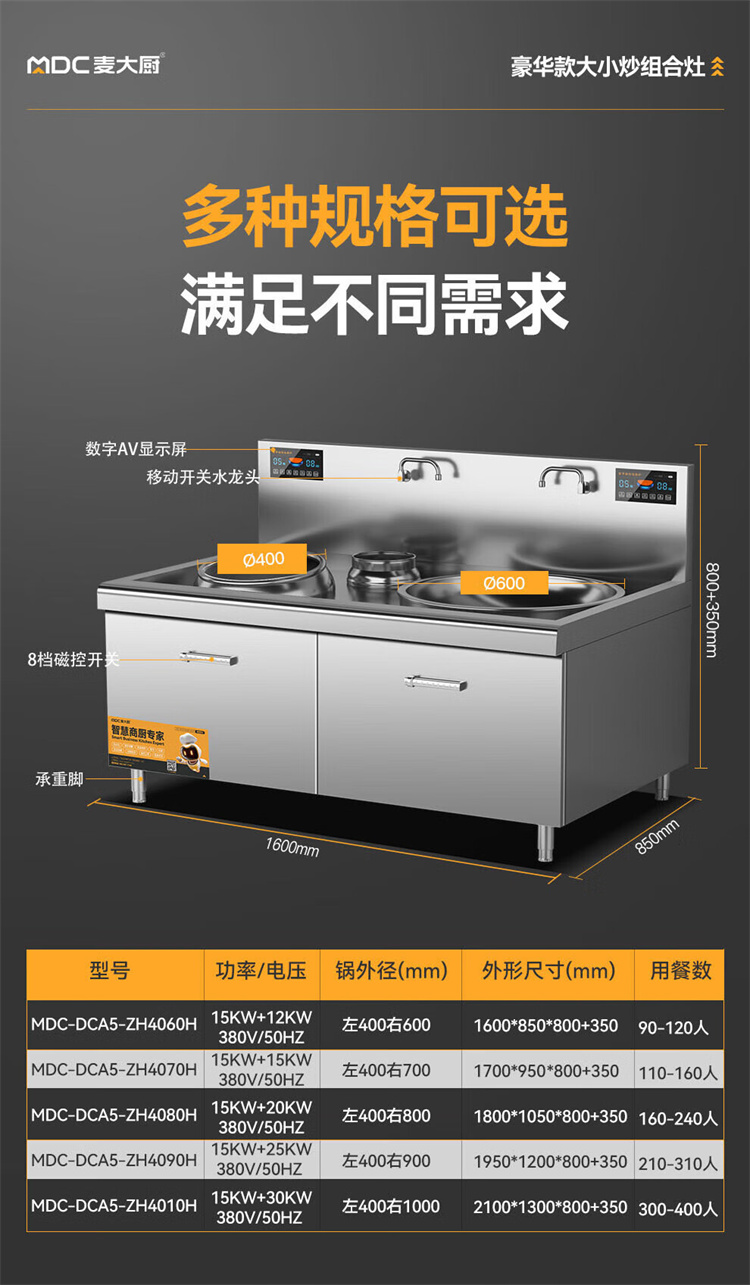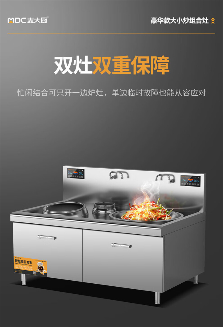 商品标题:麦大厨 MDC-DCA5-ZH4070H 商用电磁炉大小组合炉 380V 15K+15KW 左400mm右700mm(单位:台)