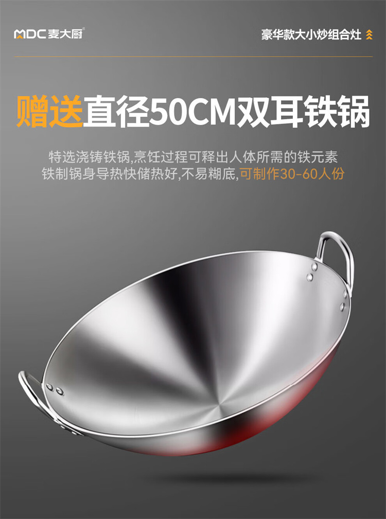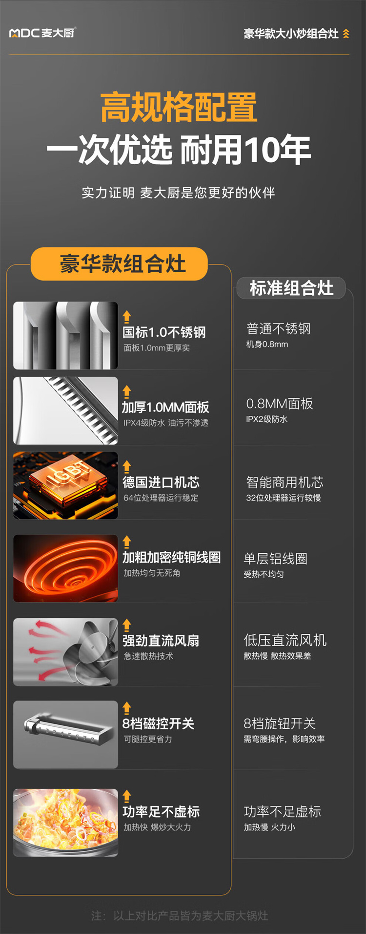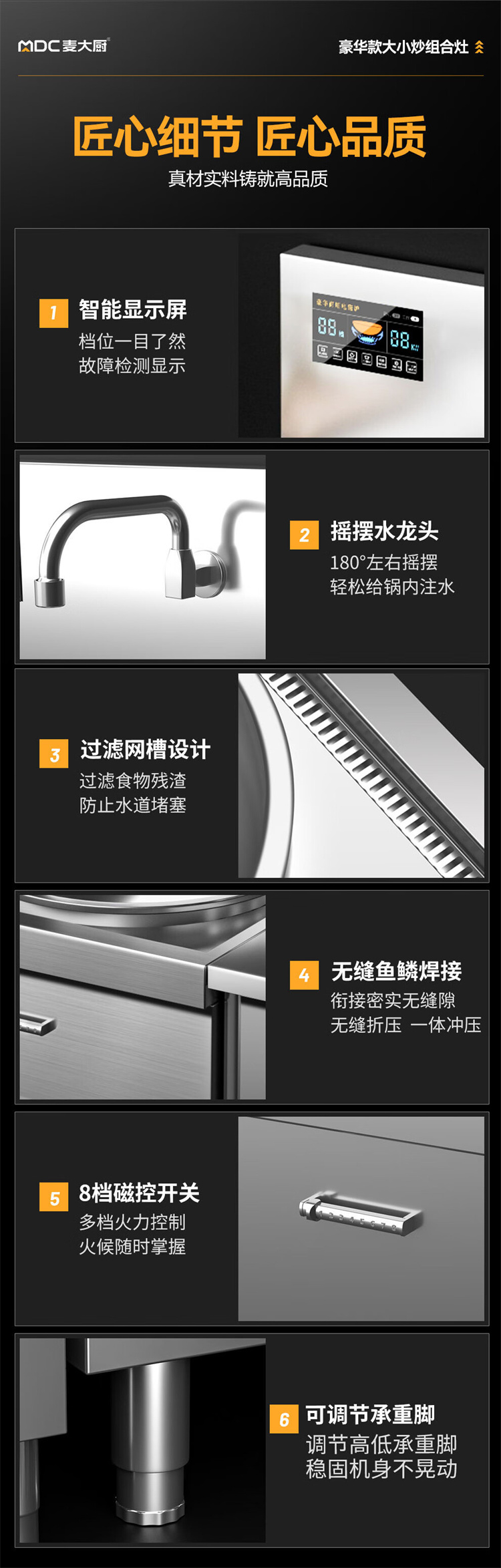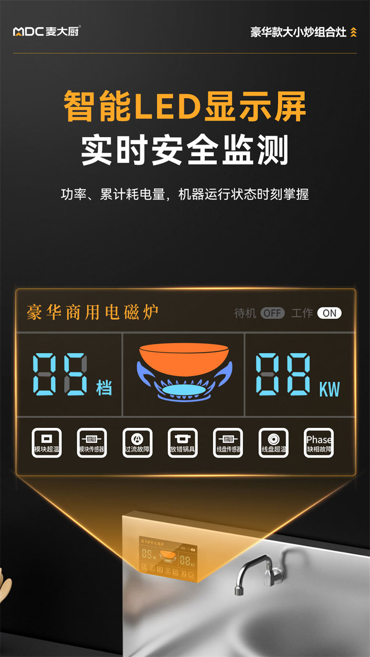 商品标题:麦大厨 MDC-DCA5-ZH4070H 商用电磁炉大小组合炉 380V 15K+15KW 左400mm右700mm(单位:台)