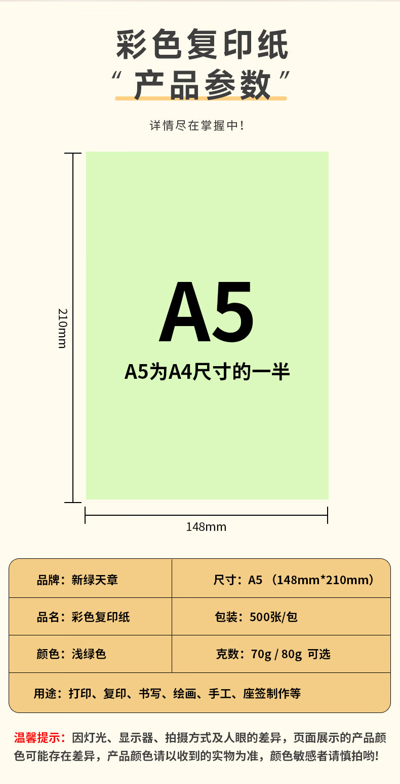 新绿天章P2263 彩色复印纸80克/A5/500页/包 浅绿色(包)(单位:包)