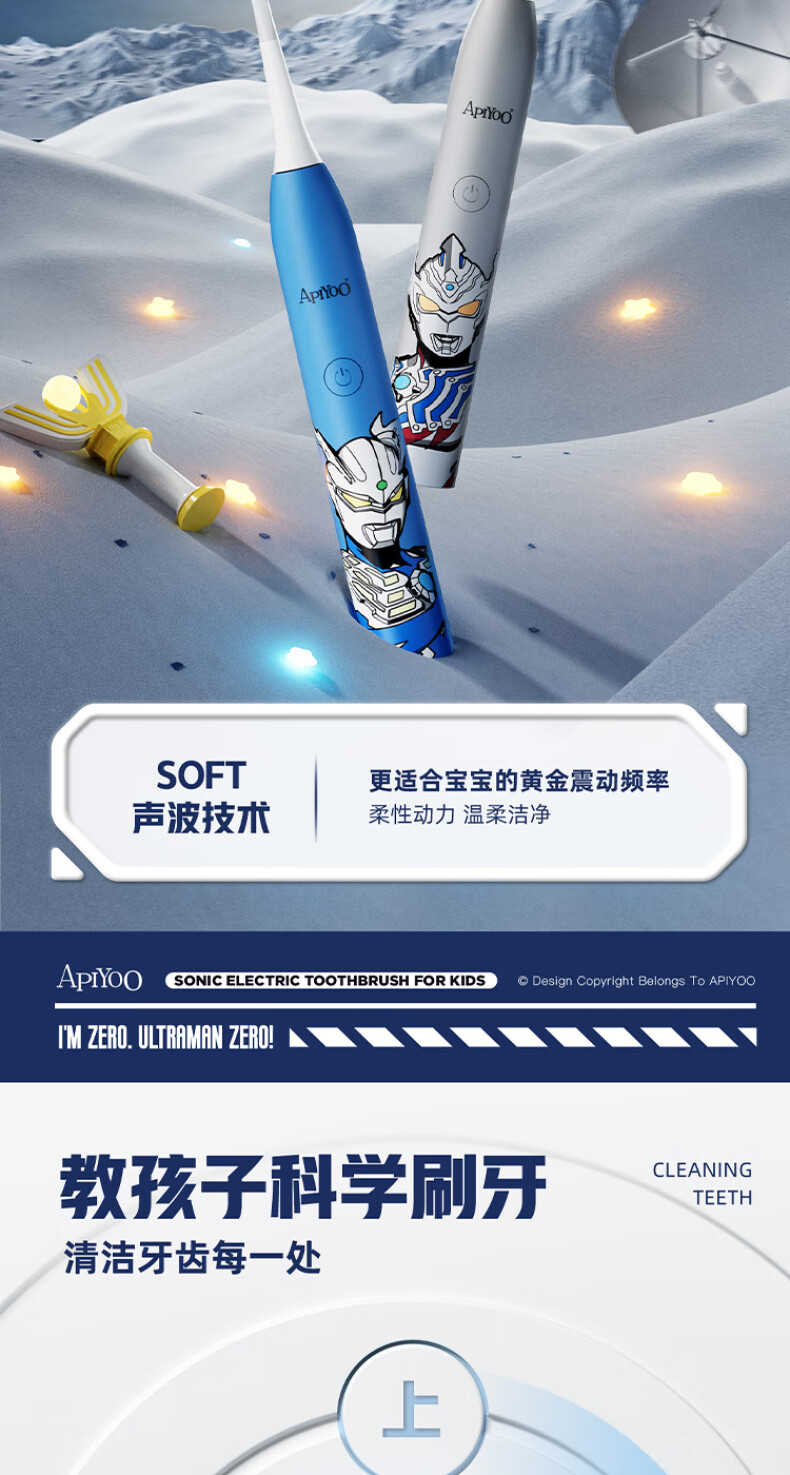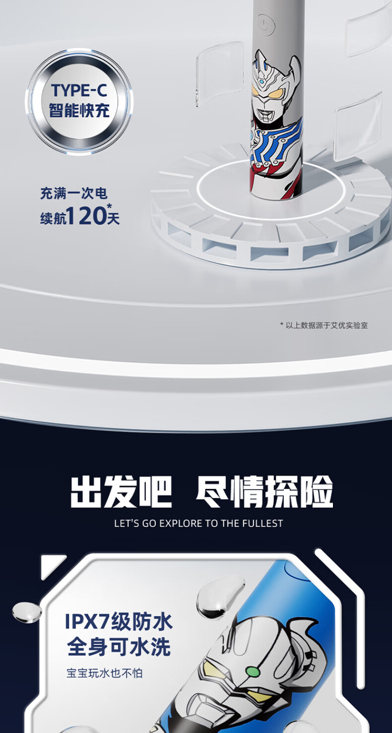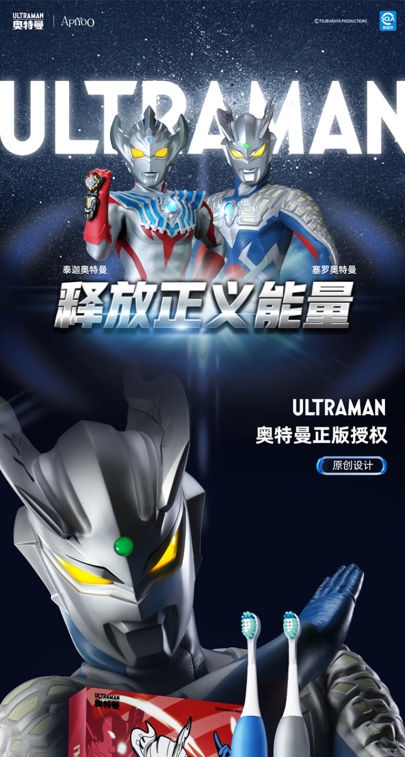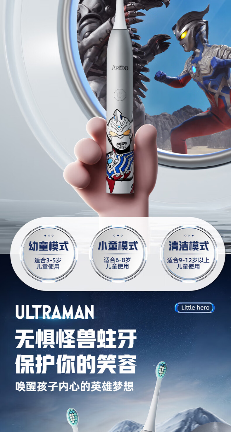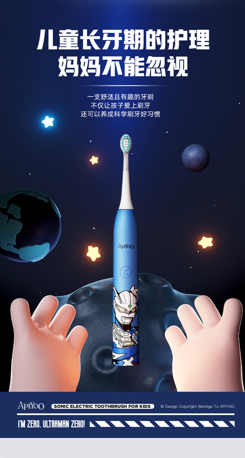 艾优ApiYoo儿童电动牙刷A7泰迦奥特曼直充款银色(支)