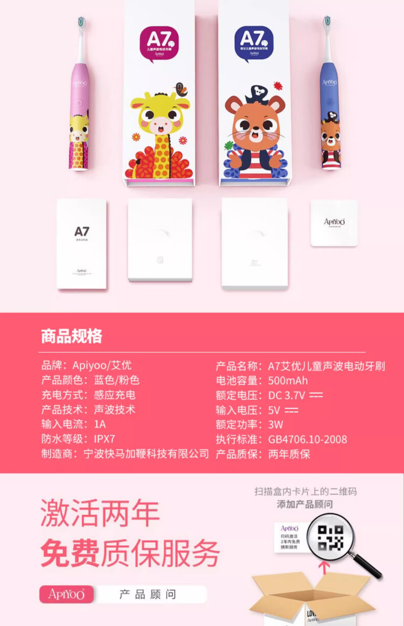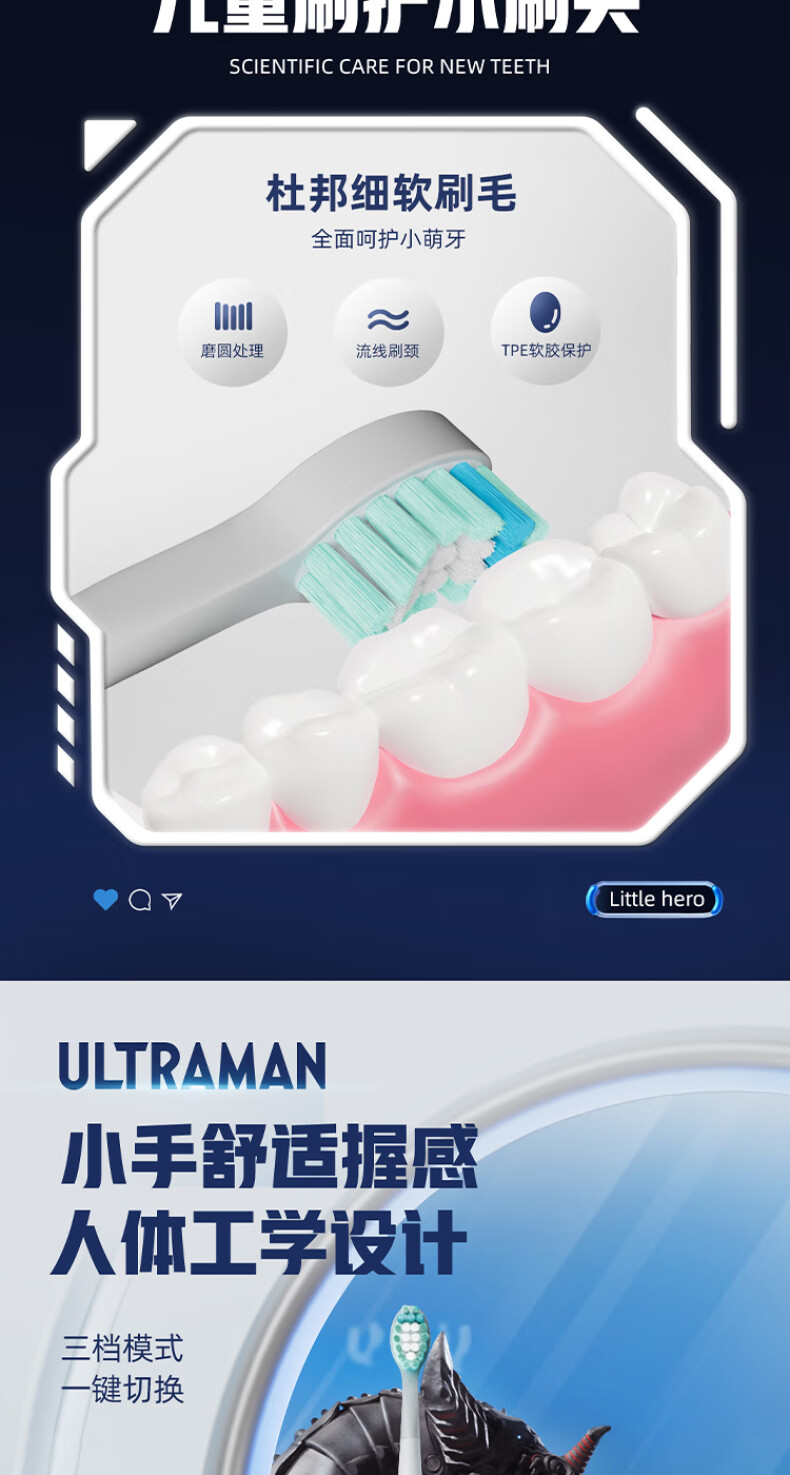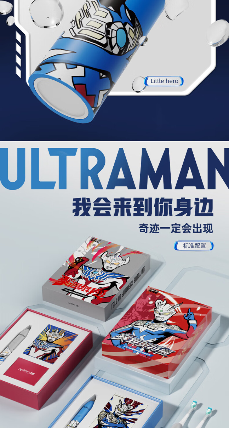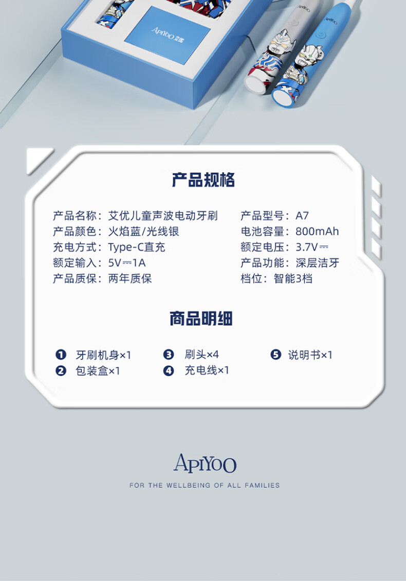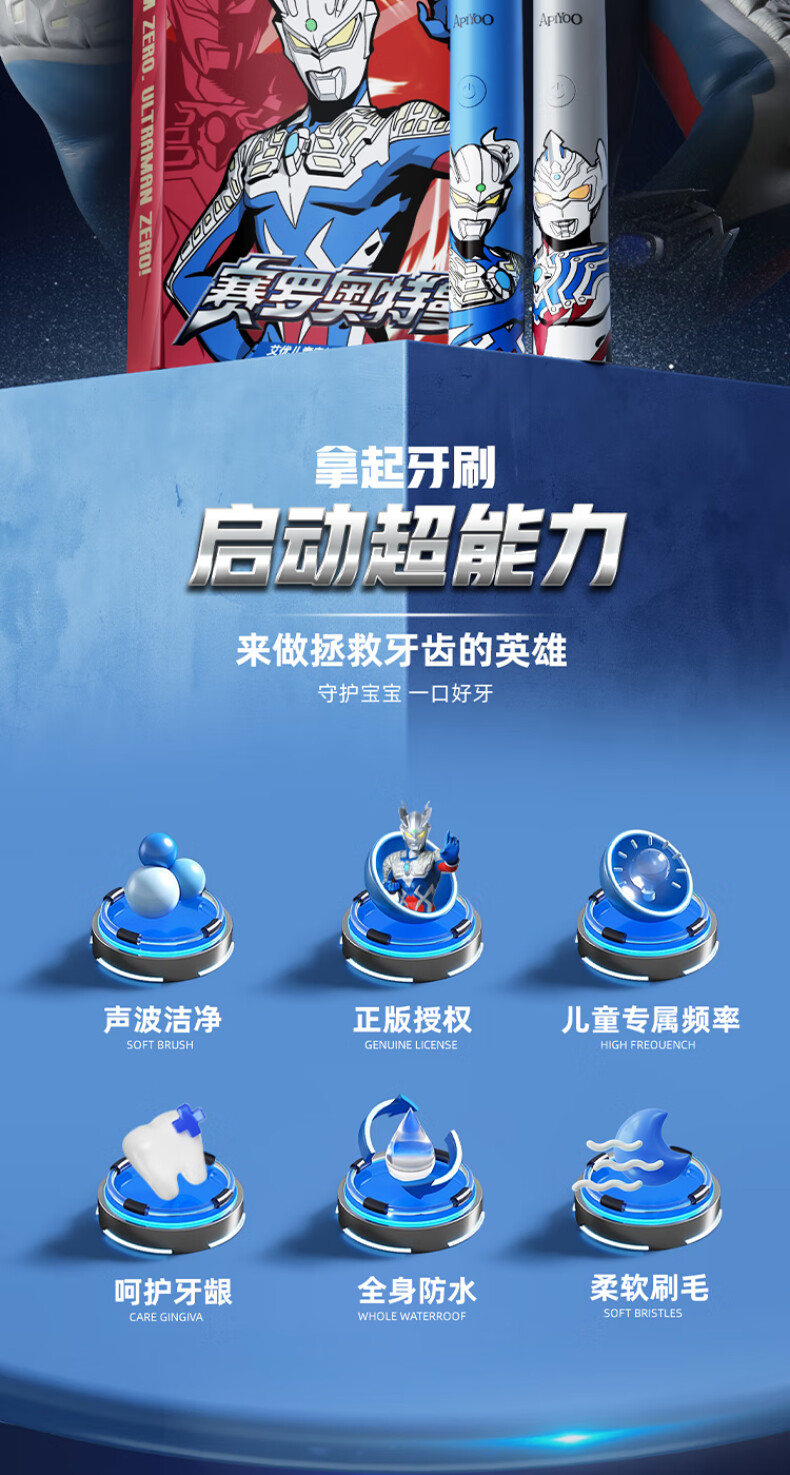 艾优ApiYoo儿童电动牙刷A7泰迦奥特曼直充款银色(支)