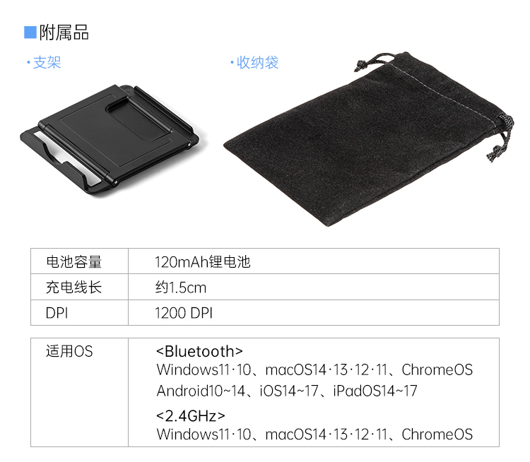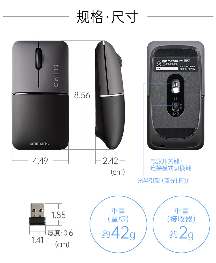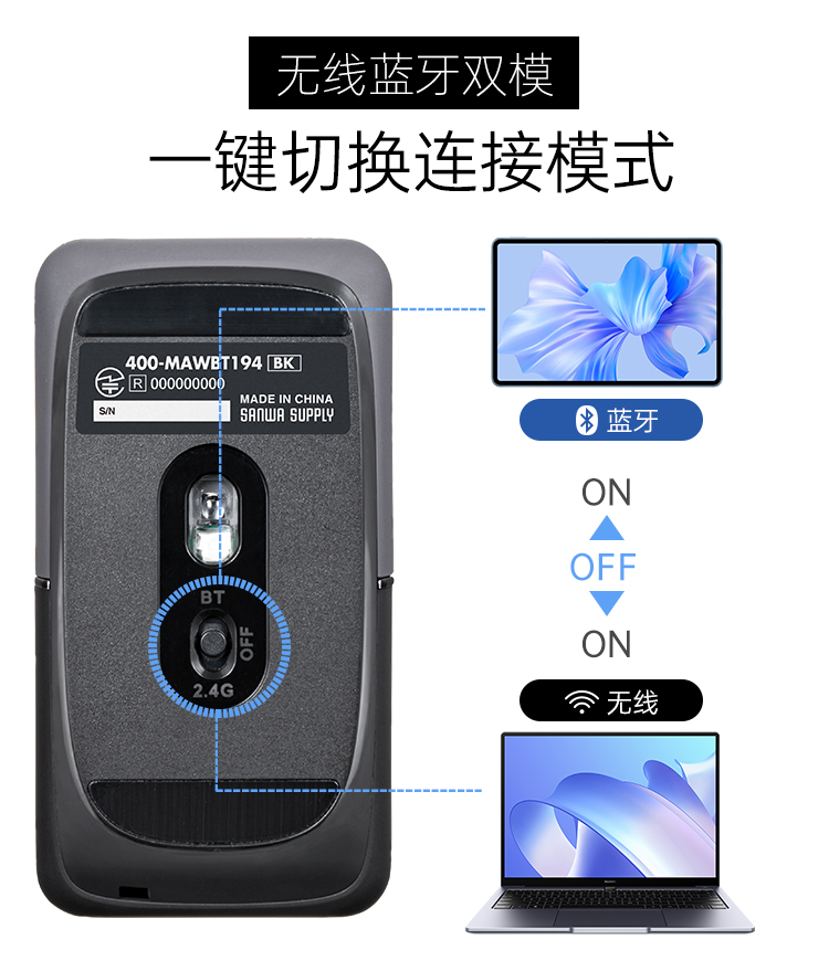 商品标题:山业400-MAWBT194NV 蓝牙无线双模鼠标 充电款附支架布袋 蓝色(个)