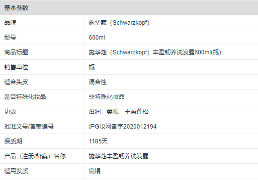 商品标题:施华蔻(Schwarzkopf)丰盈韧养洗发露600ml(瓶)