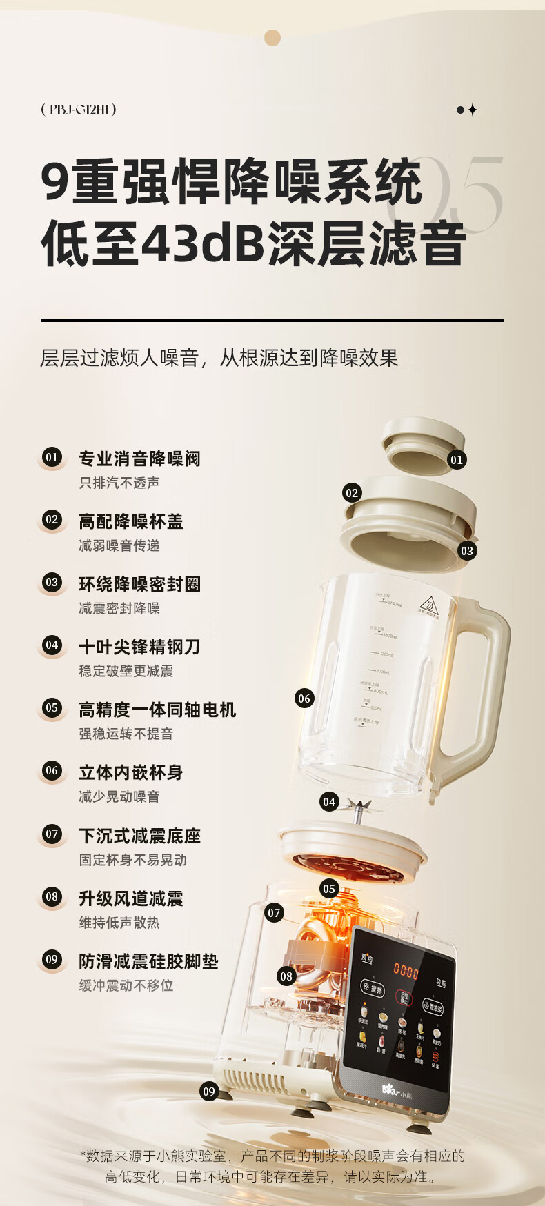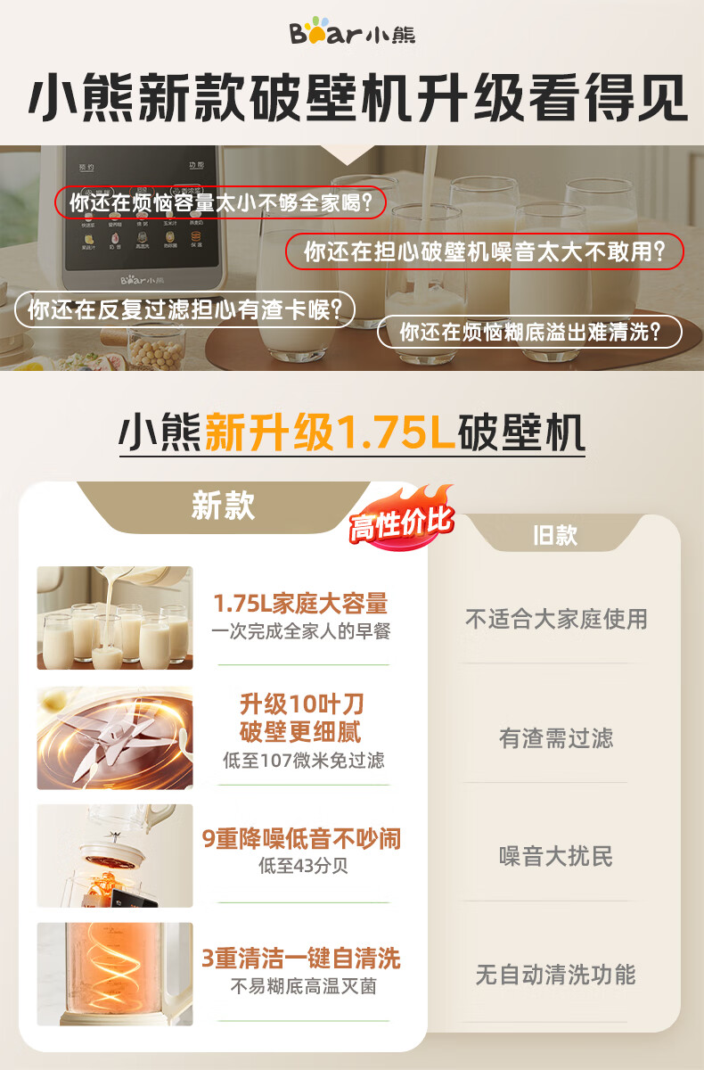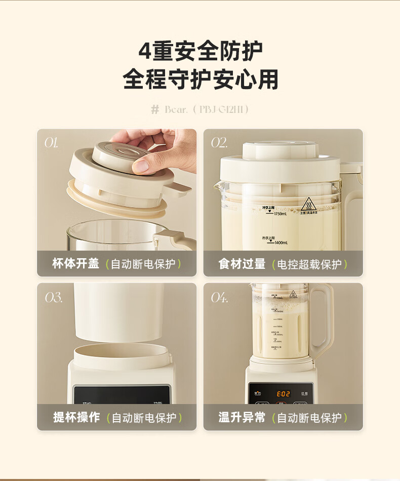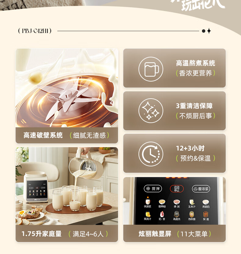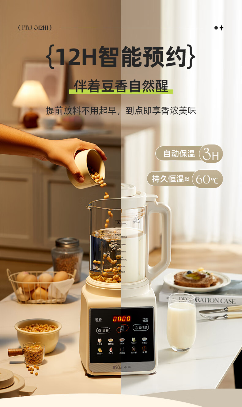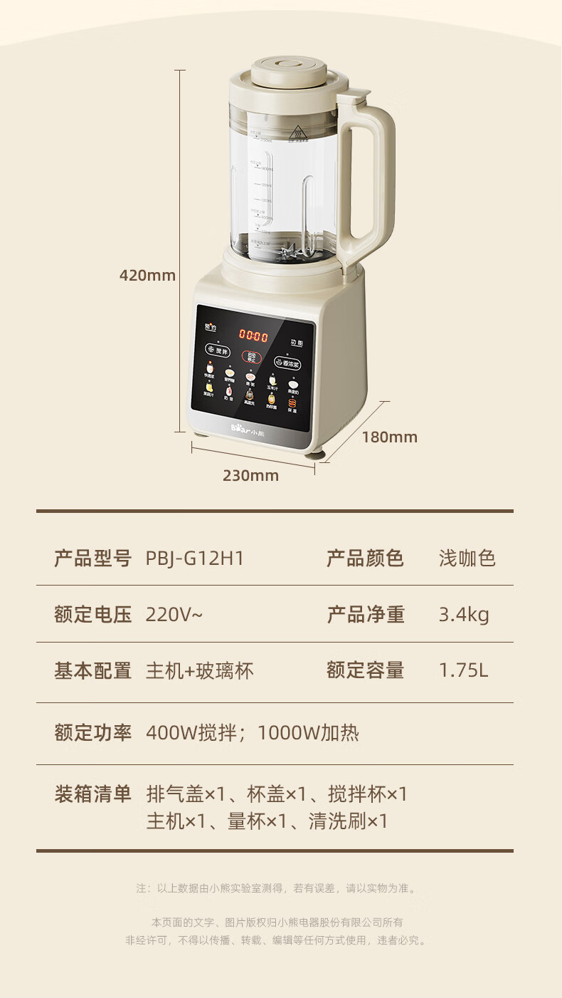 小熊(Bear)PBJ-G12H1破壁机家用多功能1.75升大容量3-6人(台)