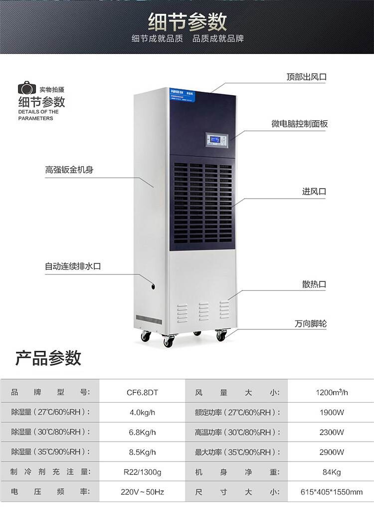 商品标题:百奥(PARKOO) CF6.8DT 除湿量163L/天 大功率 除湿机 (计价单位:台) 灰蓝