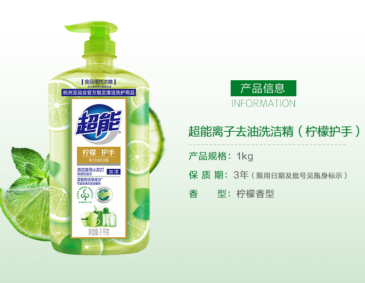 商品标题:超能离子去油洗洁精(柠檬护手)1kg(单位:瓶)