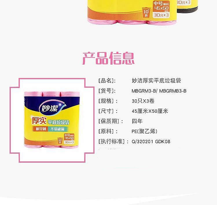 妙洁MBGRM3-B垃圾袋中号45*50cm*30只*3卷/组(单位:组)