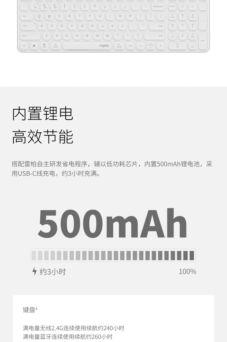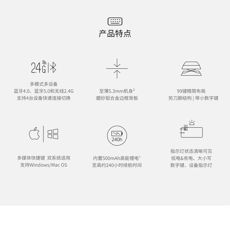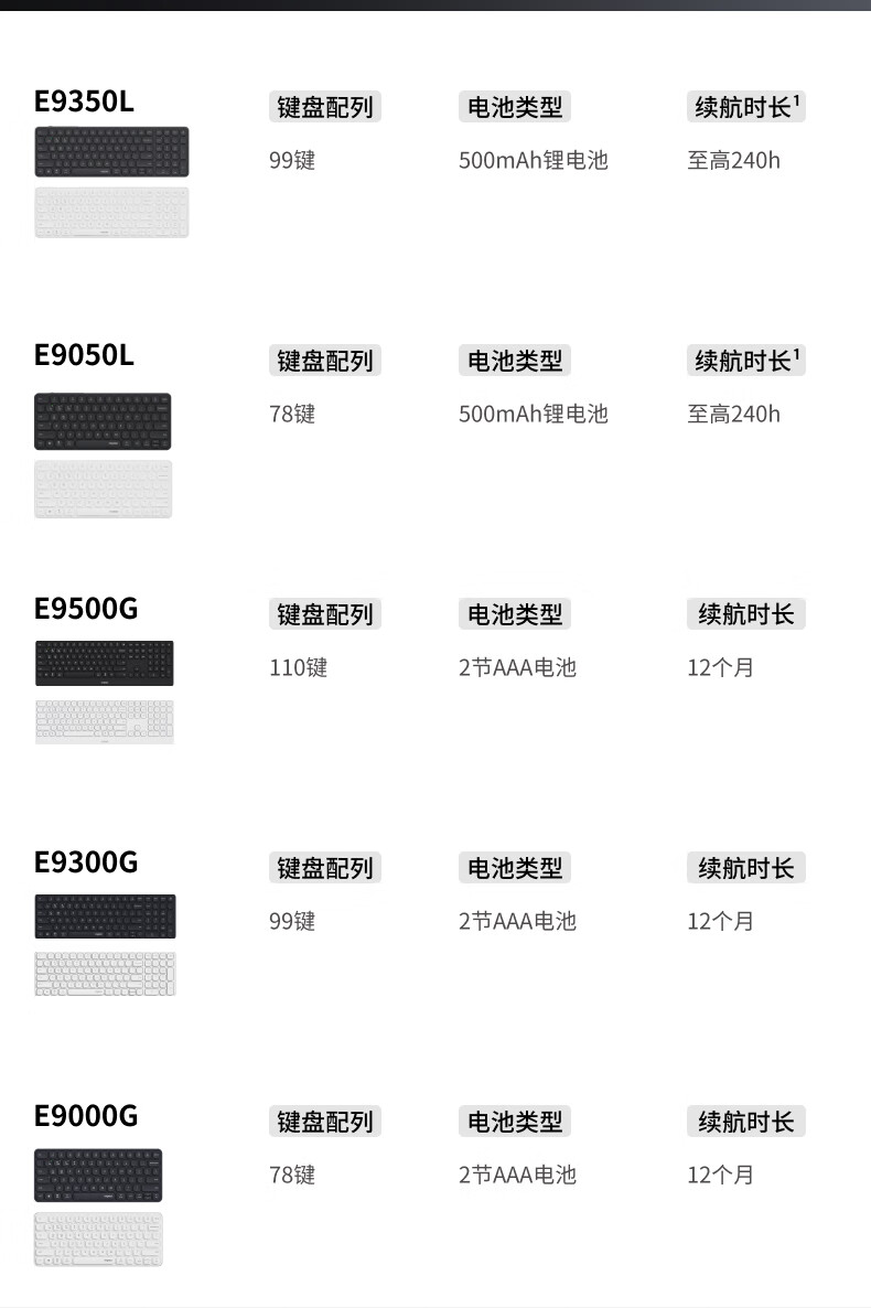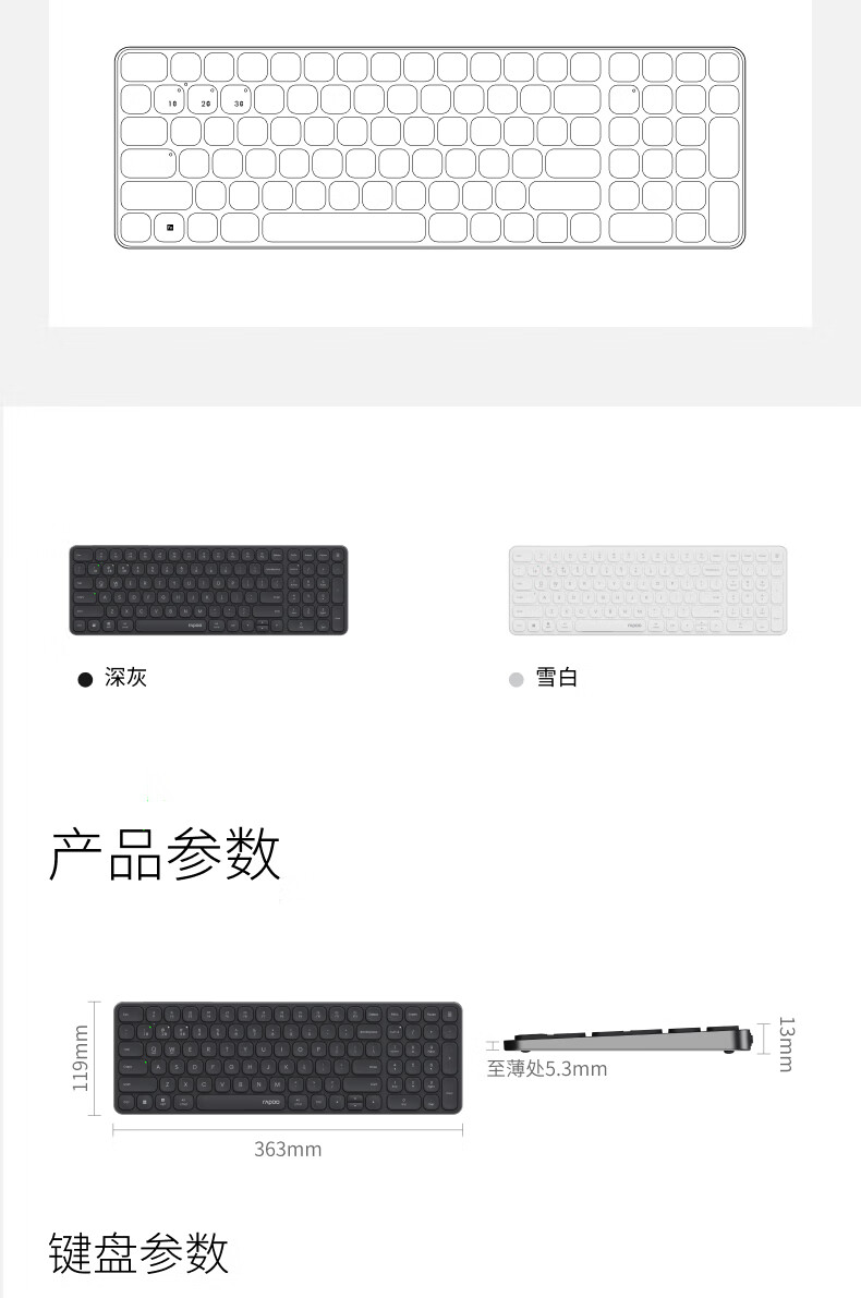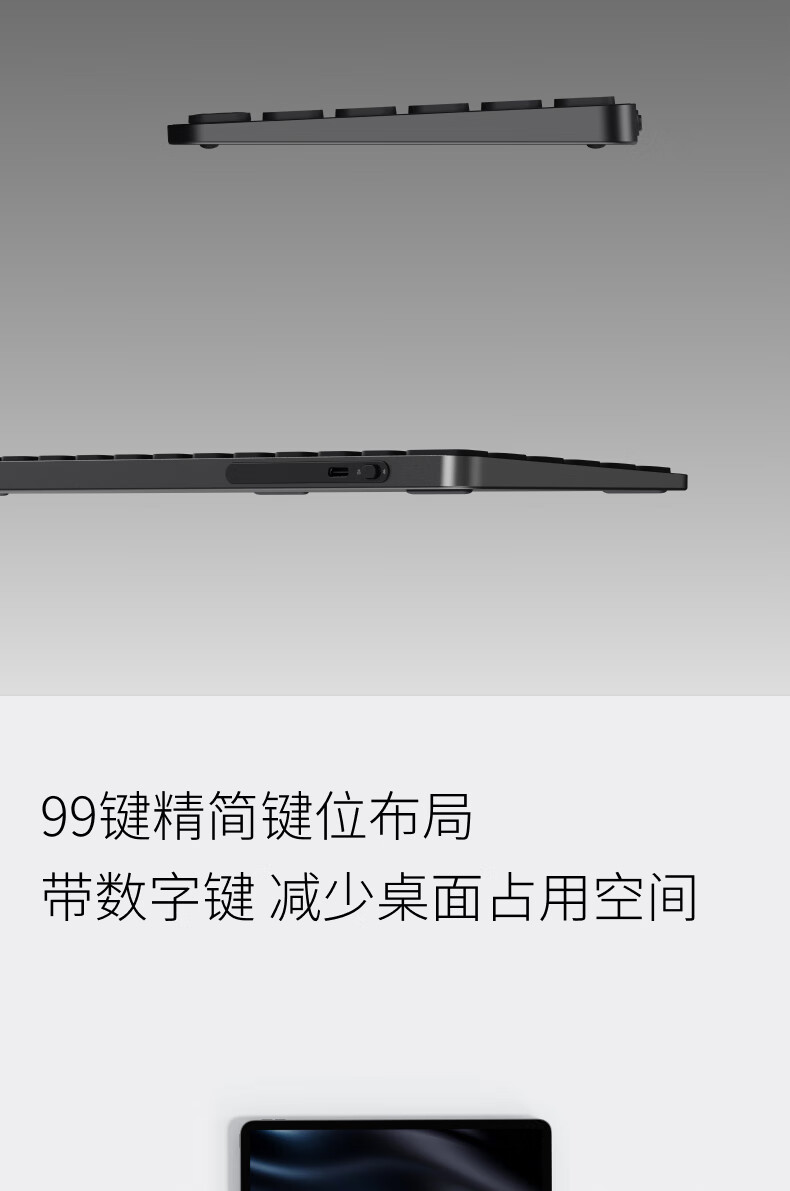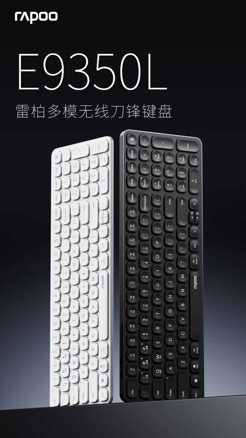 雷柏(Rapoo)E9350L 99键无线/蓝牙多模充电键盘 刀锋超薄便携紧凑无线办公键盘 支持Windows/MacOS双系统深灰