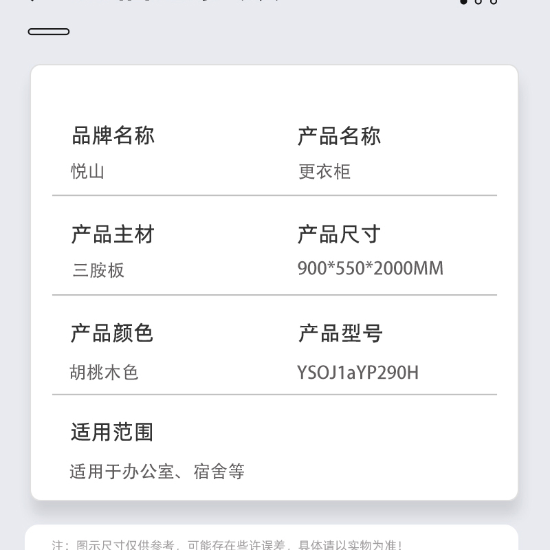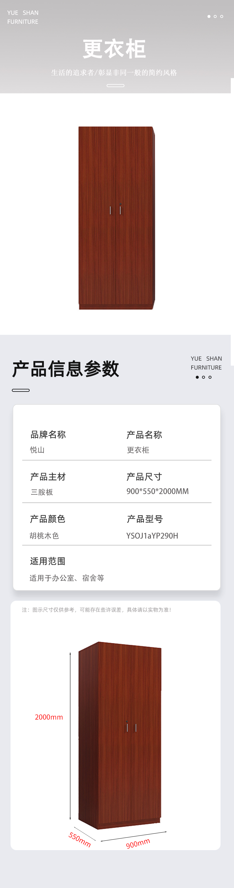商品标题:悦山YSOJ1aYP290H更衣柜2门衣柜900*550*2000mm胡桃木色(单位:个)