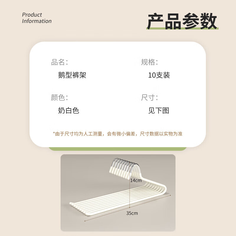 商品标题:四万公里 SWJ6059 不锈钢裤架子 白色 10个 (单位:组)