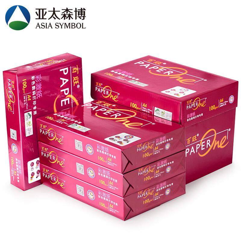 商品标题:亚太森博红百旺A4 100g 高档彩激复印纸 500张/包 4包/箱(单位:箱)