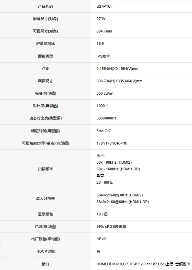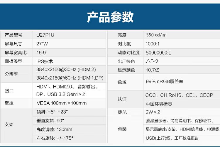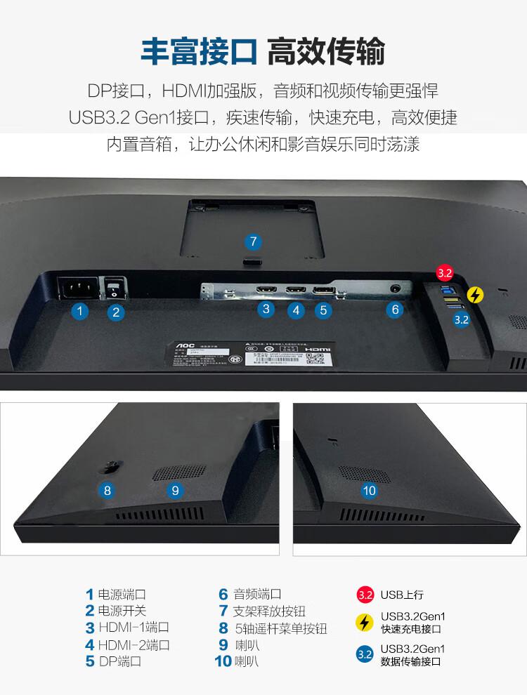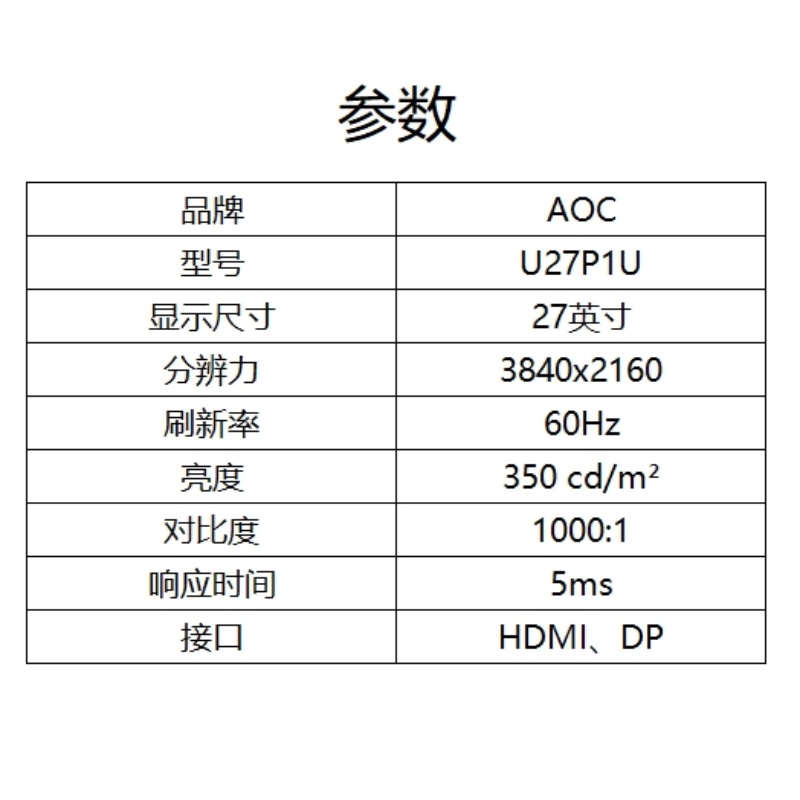 商品标题:冠捷(AOC) U27P1U 液晶显示器 (计价单位:台) 黑色