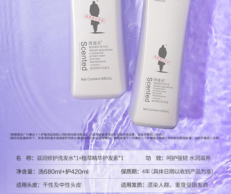 商品标题:阿道夫洗护套装(滋润修护洗发水680ml+护发素420ml)(组)