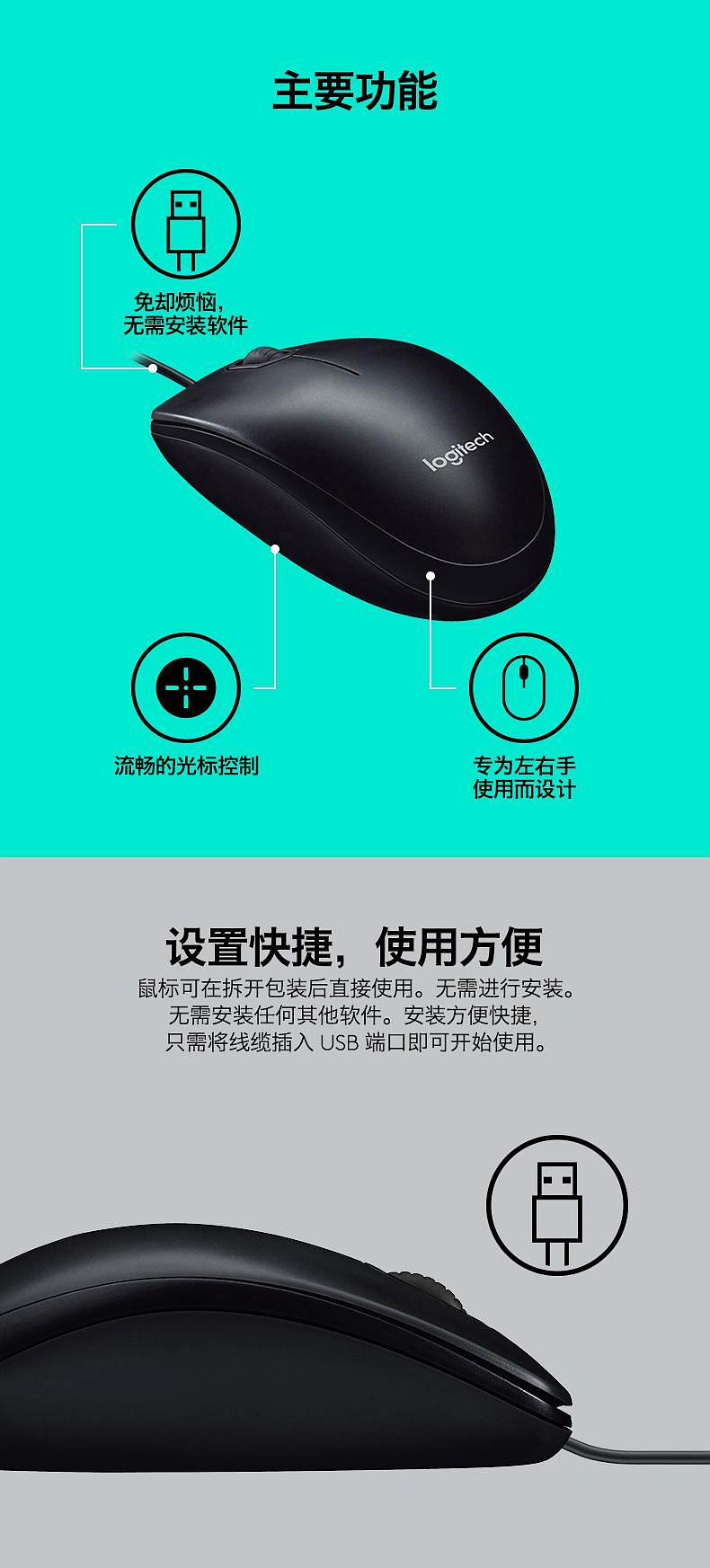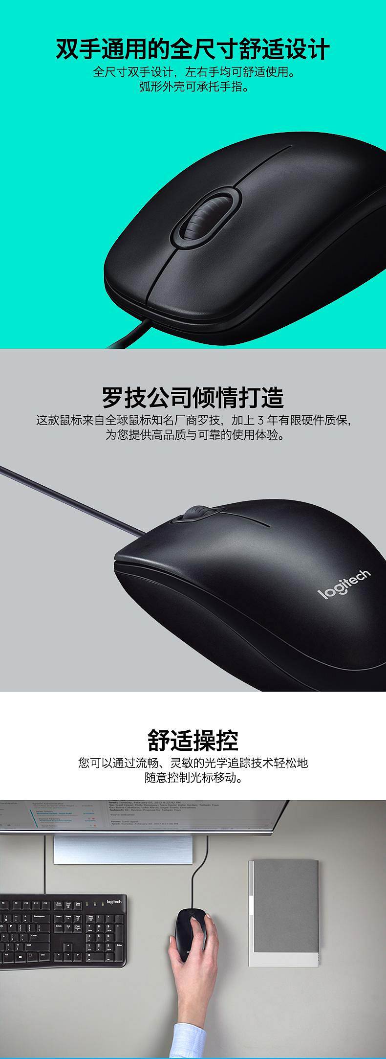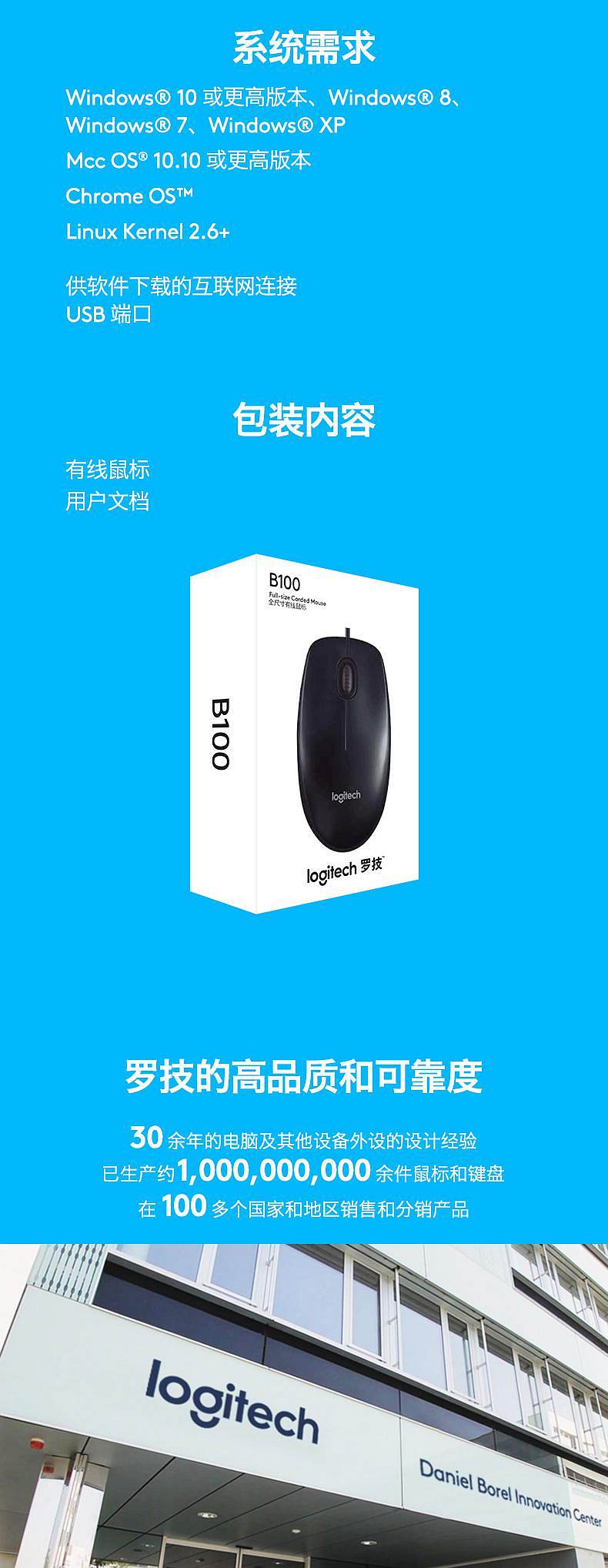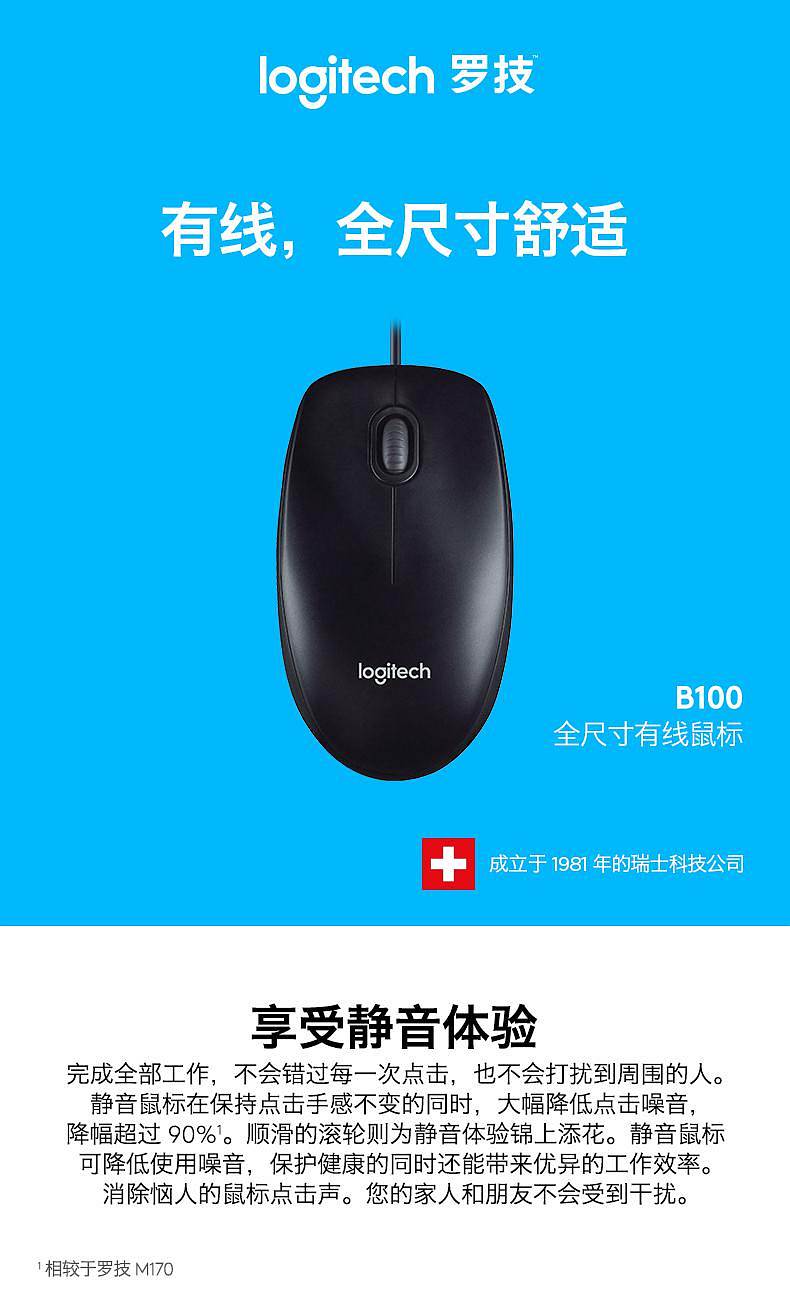 商品标题:罗技B100有线鼠标企业版黑色(个)