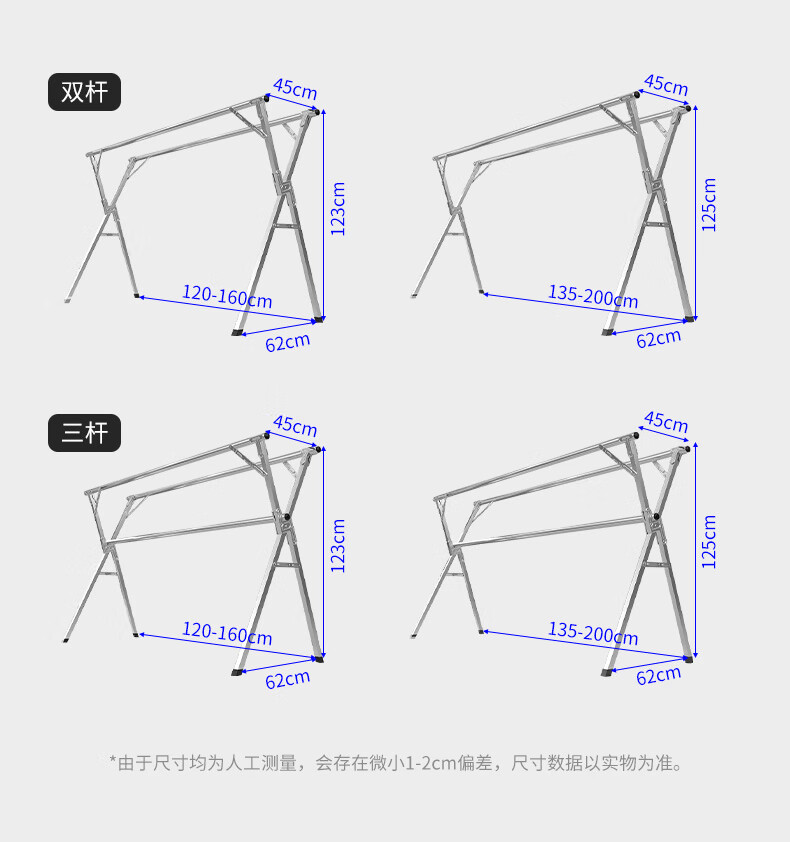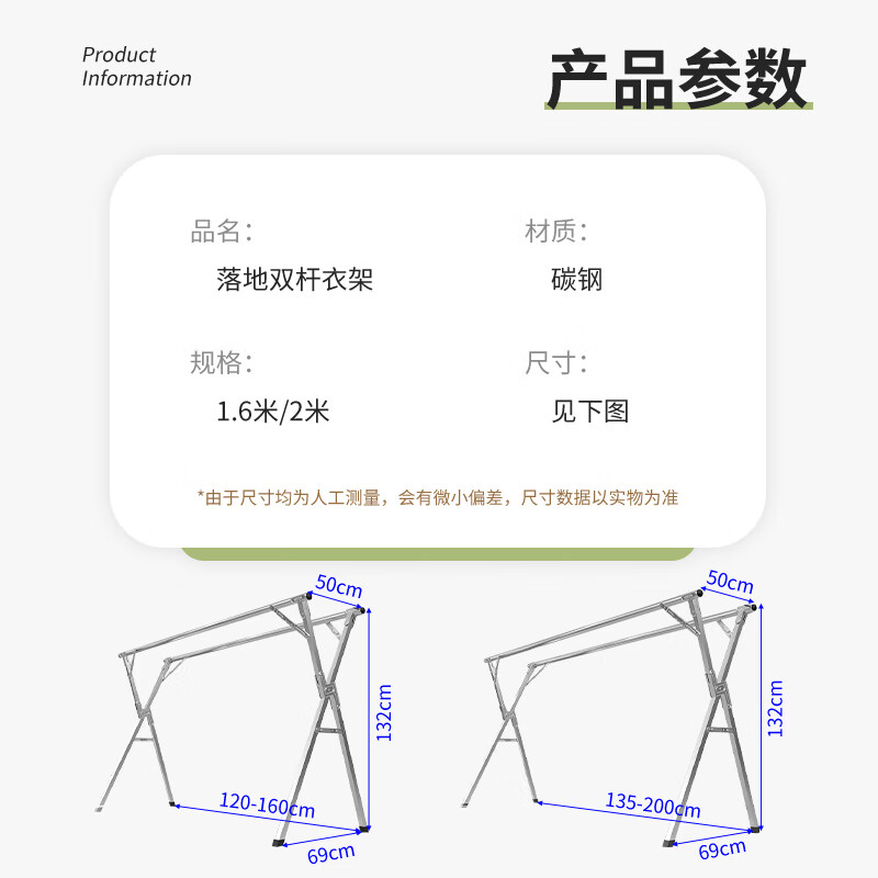 商品标题:四万公里 SWJ6075 折叠晾衣架落地伸缩杆式135-200cm (单位:个)