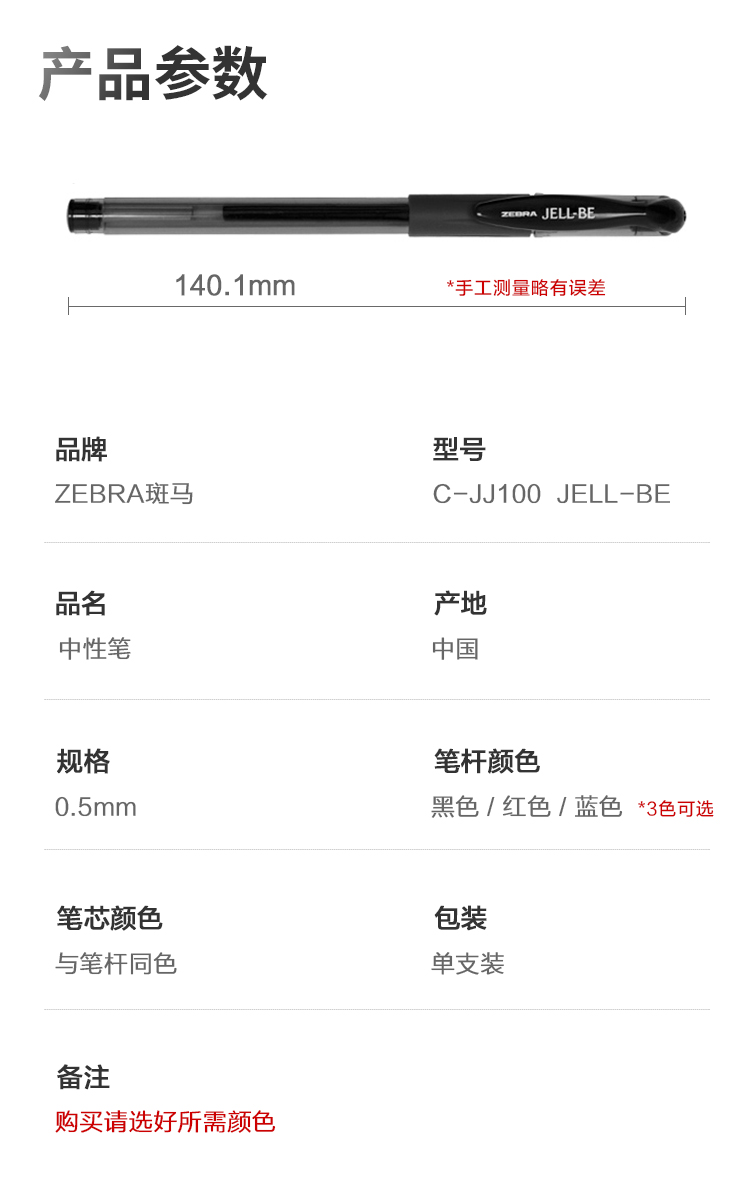 商品标题:斑马牌C-JJ100中性笔0.5mm黑色(单位:支)