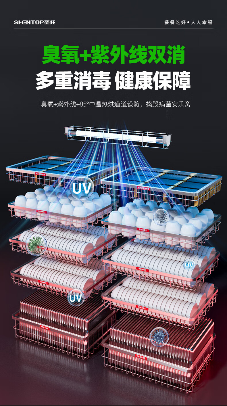 圣托(Shentop)DAB05 商用大容量厨房消毒碗柜臭氧 紫外线|1850W|863L十层消毒柜(单位:台)
