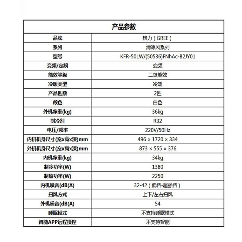 (新能效)格力(GREE)KFR-50LW/(50536)FNhAc-B2JY01 清凉风 2P 变频 冷暖 二级能效 柜式空调(套)【标准配件+基础安装】