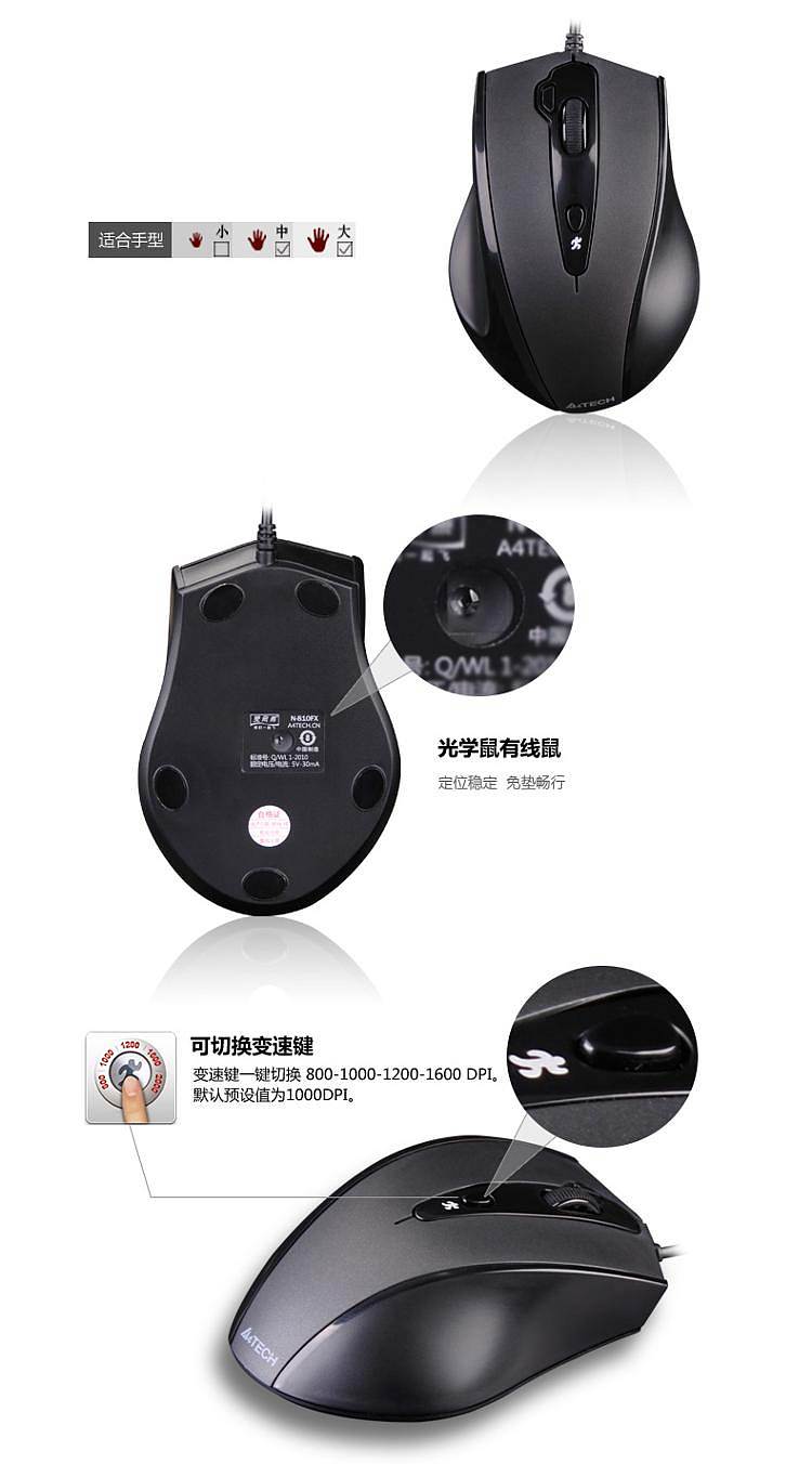 商品标题:双飞燕N-810FX有线鼠标USB接口(个)