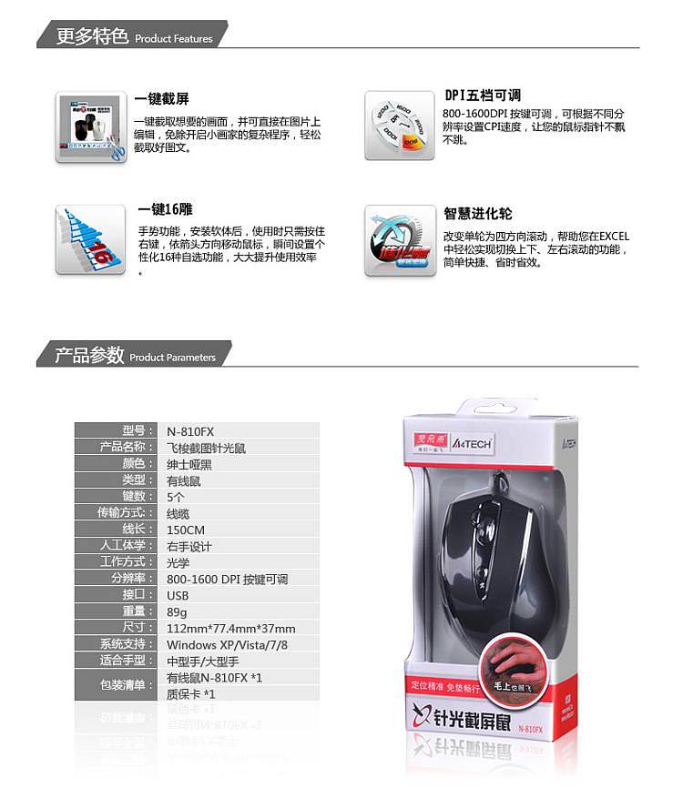 双飞燕N-810FX有线鼠标USB接口(个)