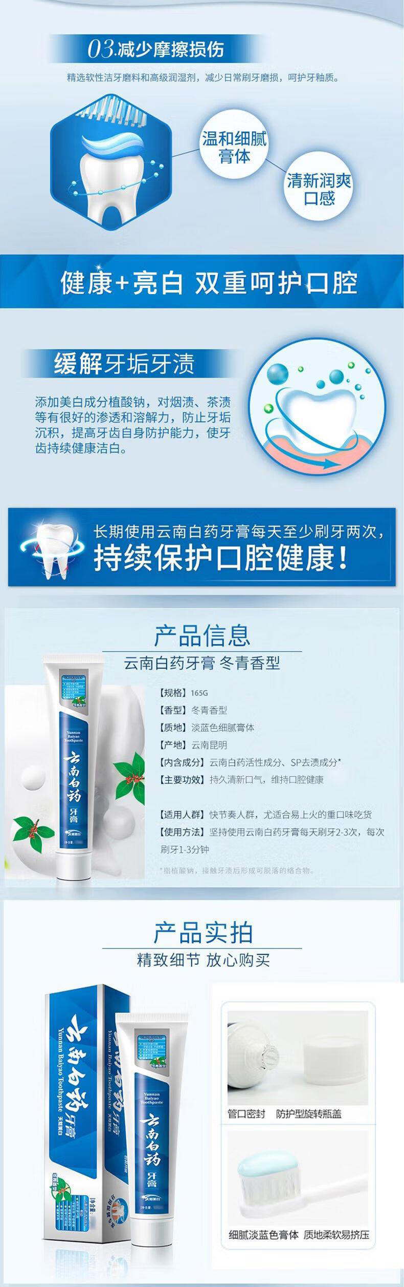 品牌:云南白药(YUNNANBAIYAO)型号:165g商品标题:云南白药冬青香型牙膏165g(单位:支)销售单位:支