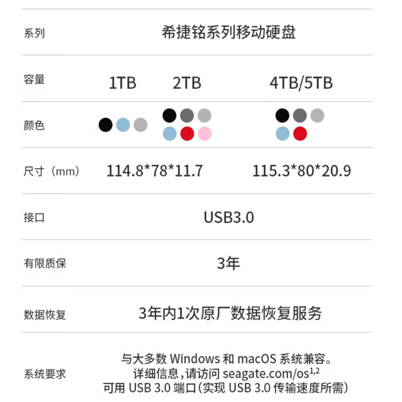 商品标题:希捷新铭系列STKZ5000400加密移动硬盘黑色5T/USB3.0(个)