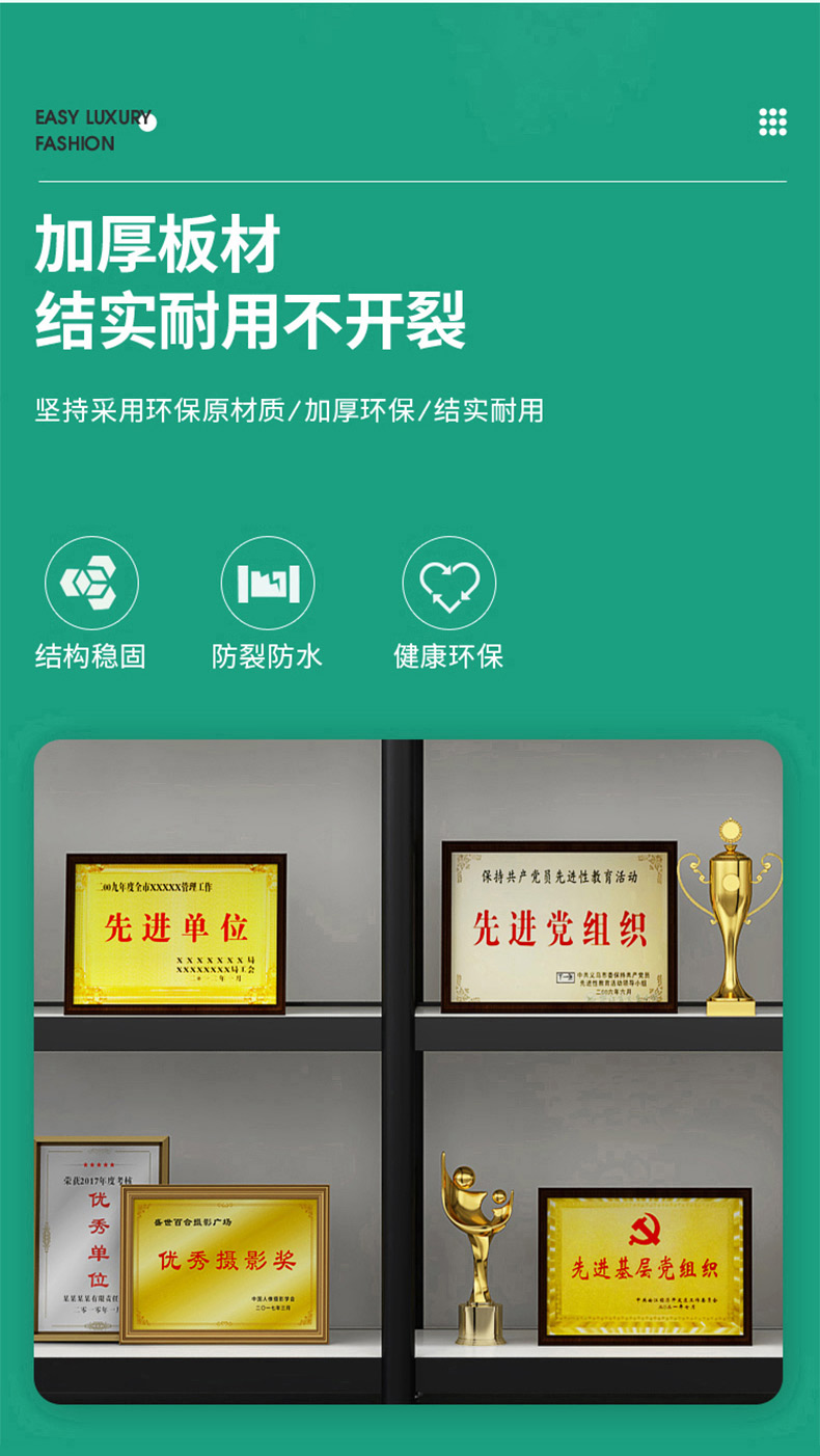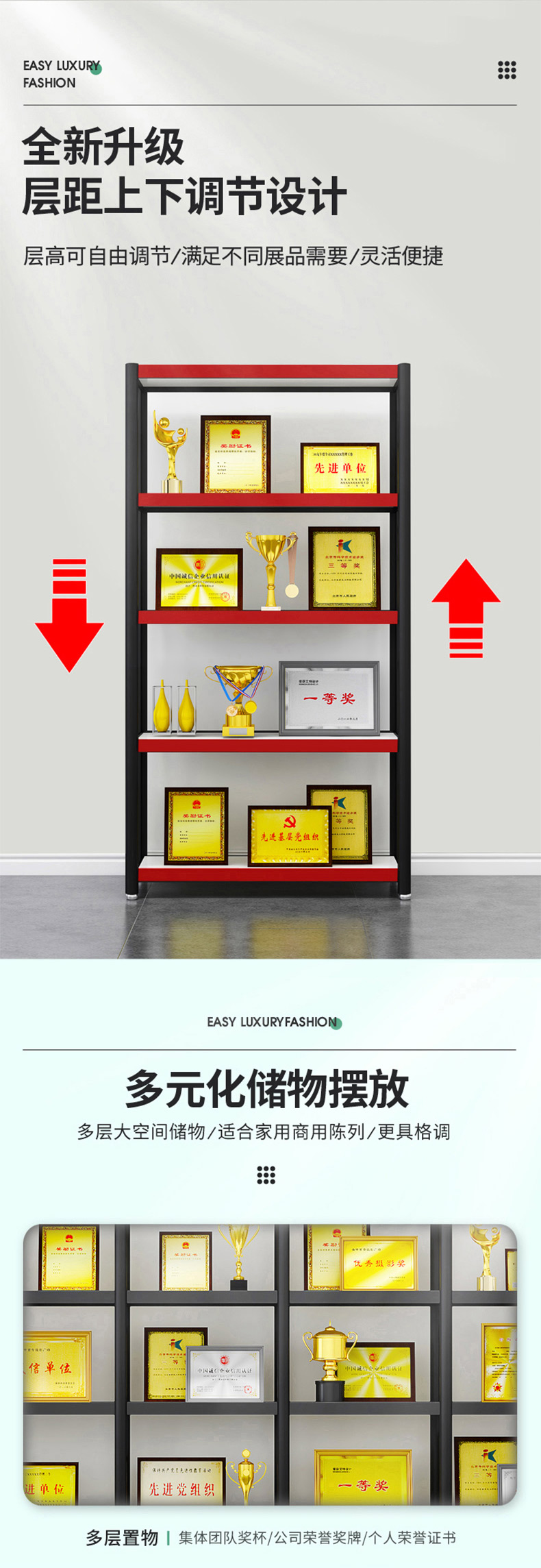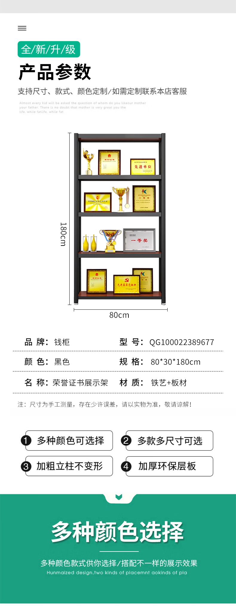 商品标题:钱柜QG100022389677荣誉证书奖杯展示架80*30*180cm(组)