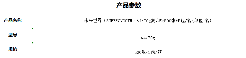 商品名称:未来世界复印纸A4/70G5包/箱白色(箱)