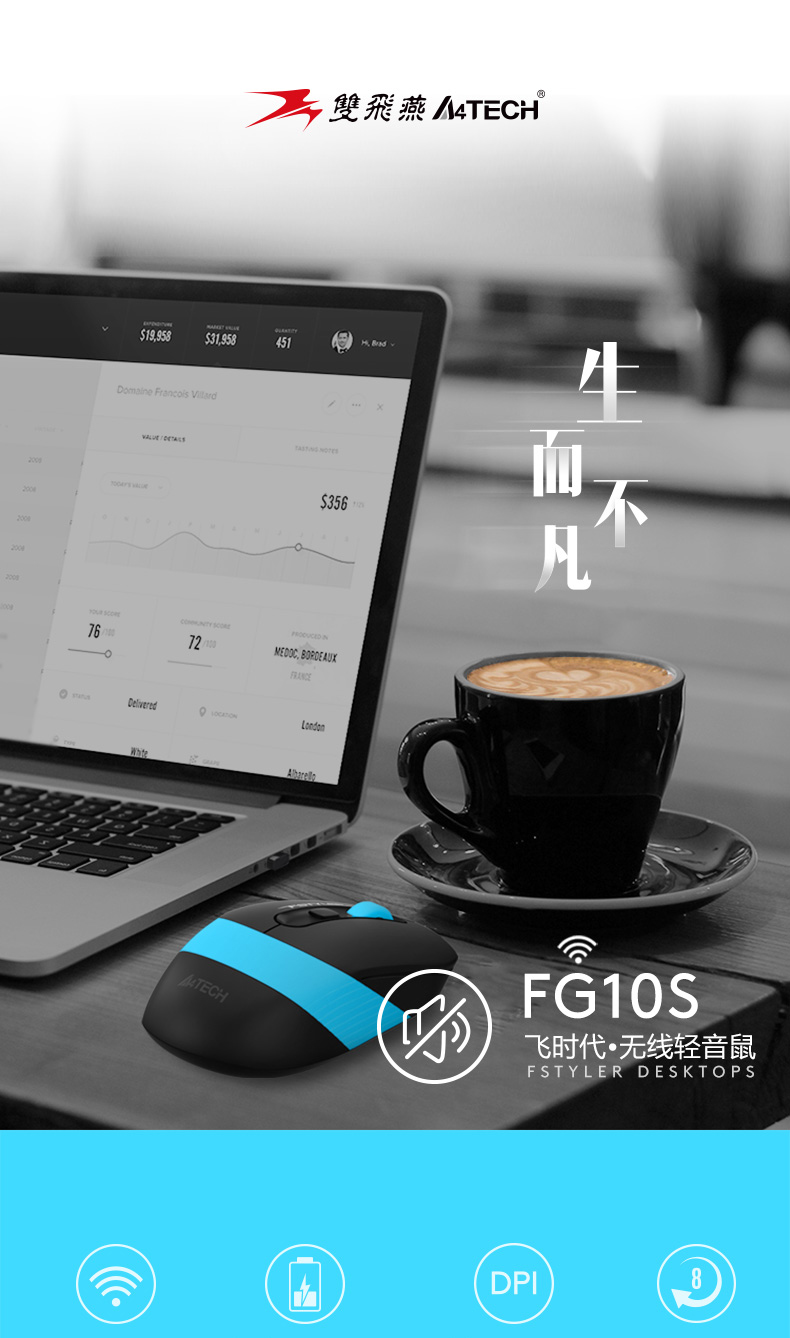 商品标题:双飞燕 FG10S飞时代 静音无线鼠标USB接口2.4G 遂空灰(个)