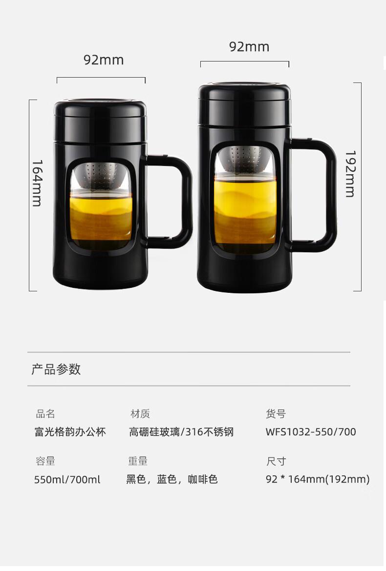 富光(FUGUANG)WFS1032-700格韵塑玻办公水杯 700ml(单位:只) 黑色(可定制+100只起)