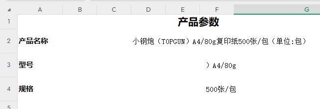 商品标题:小钢炮(T0PGUN)经典小钢炮A4/80g复印纸500张/包(单位:包)