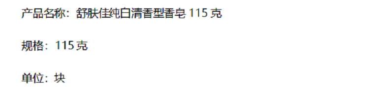 商品标题:舒肤佳纯白清香型香皂115克(块)(新老包装随机发货)