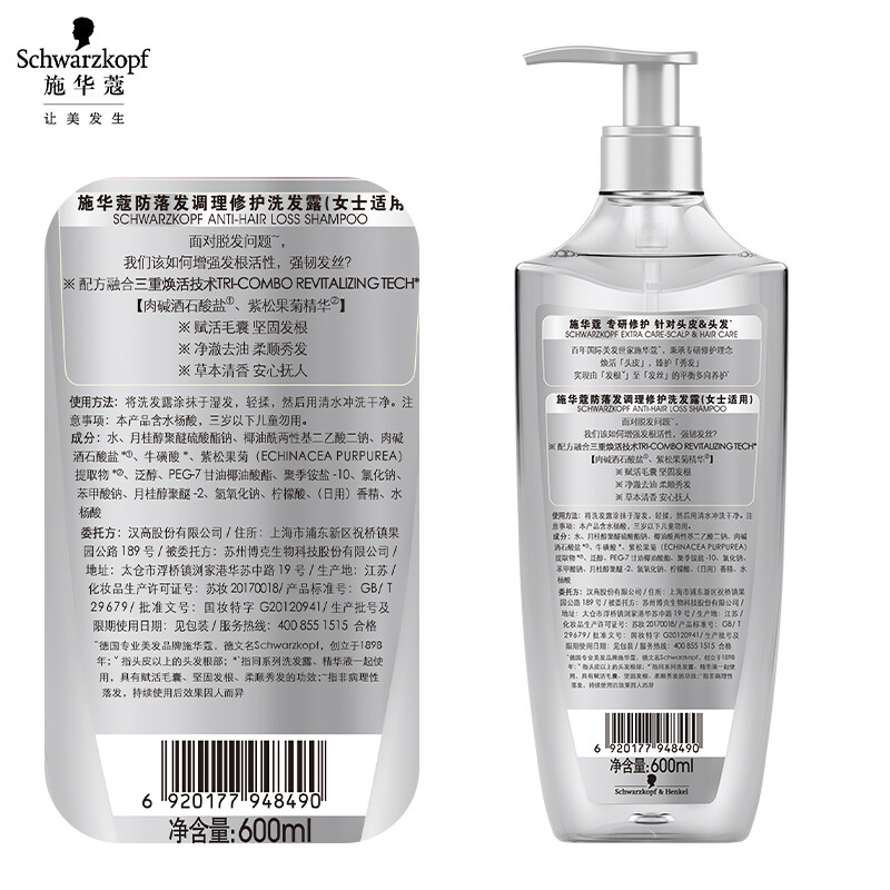 商品标题:施华蔻(Schwarzkopf)防脱赋活修护洗发水600ml(单位:瓶)