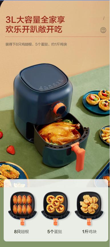 美的 MF-KZ30E201(KZ30E3L)3L 空气炸锅(单位:台)蓝