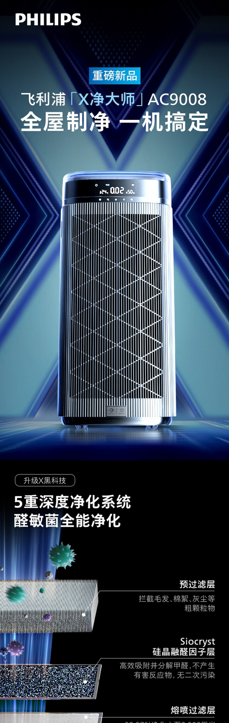 飞利浦(PHILIPS)AC9008空气净化器家用卧室母婴低躁(单位:台)