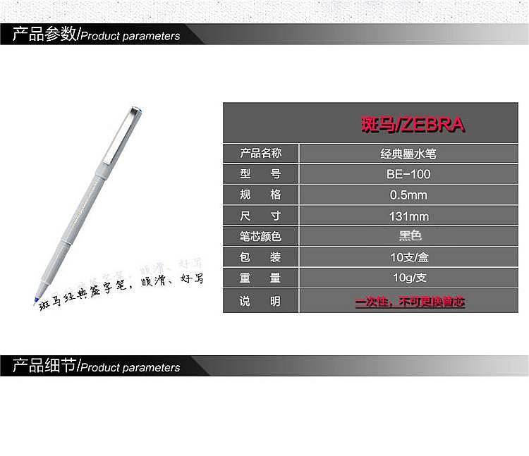 商品标题:斑马(ZEBRA)BE-100 签字笔 0.5mm 黑芯10支/盒 (单位:盒)