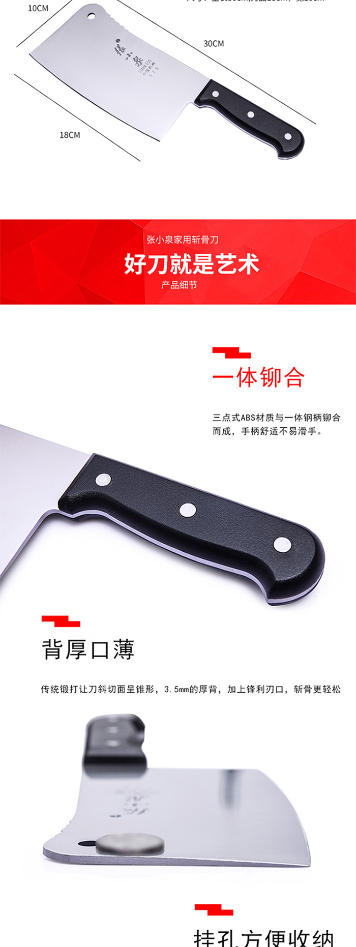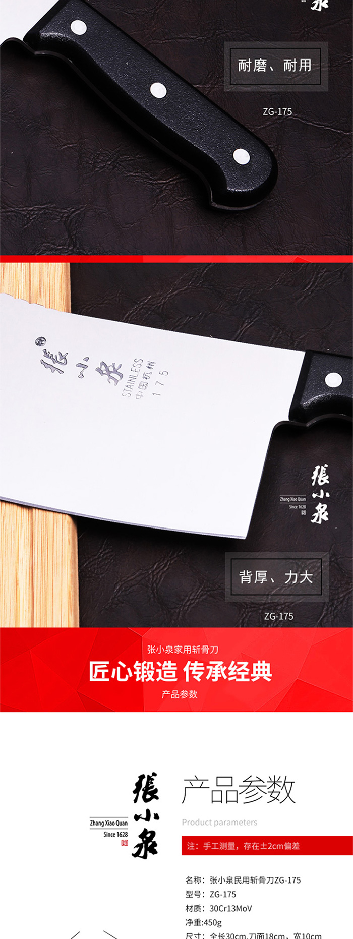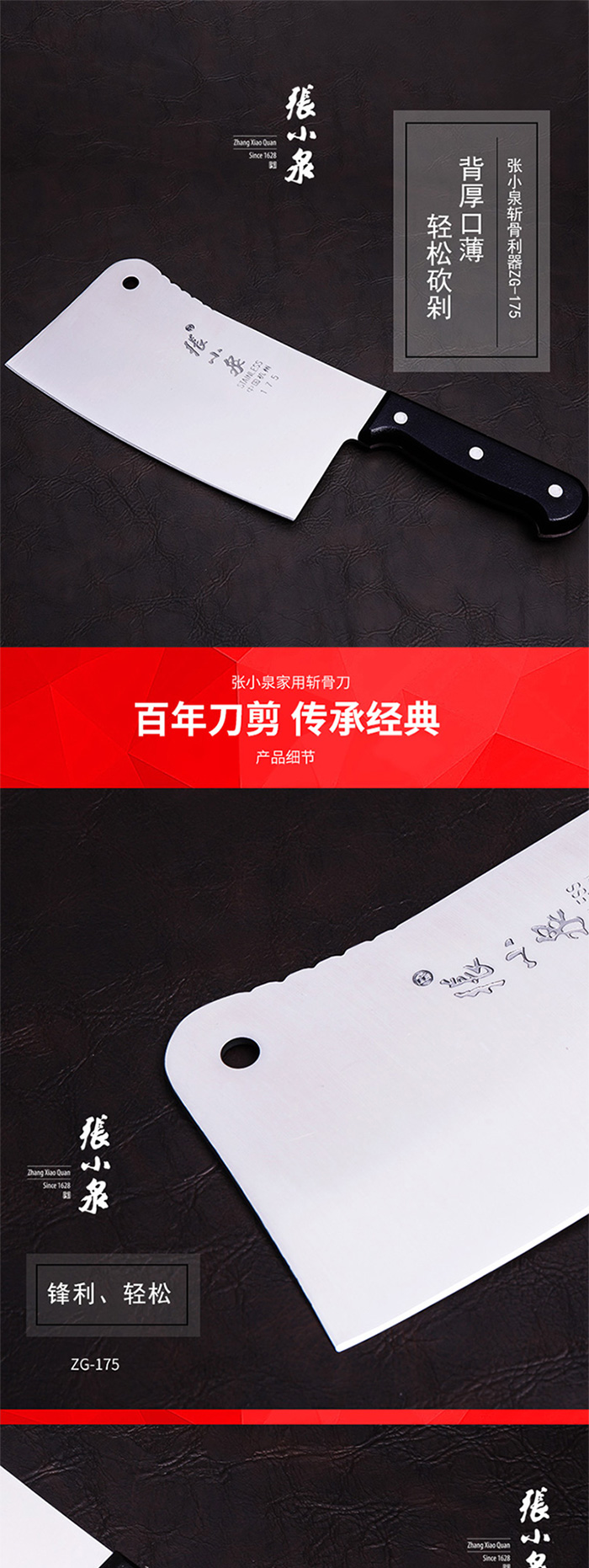 商品标题:张小泉ZG-175家用斩骨刀不锈钢(把)
