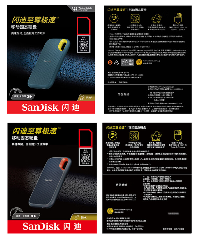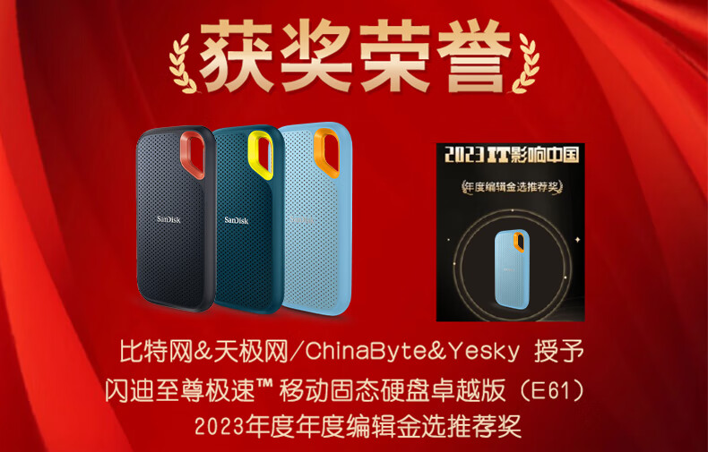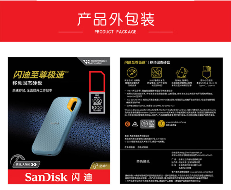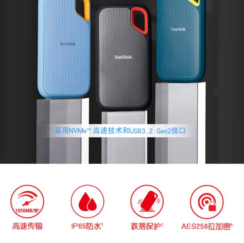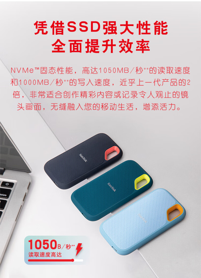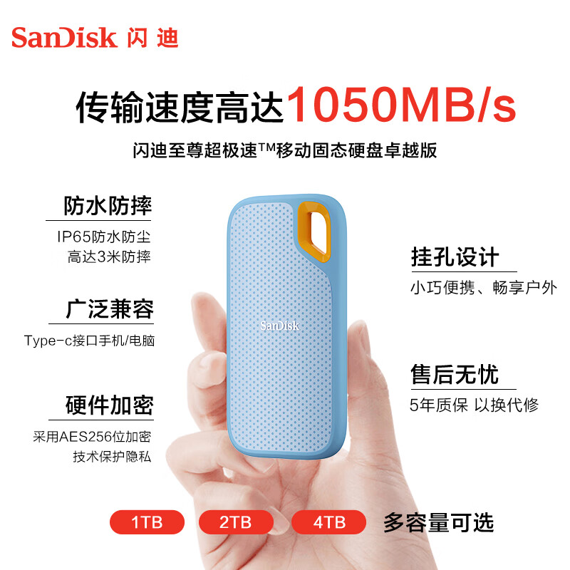闪迪(SanDisk)2TB Nvme移动固态硬盘(PSSD)E61至尊极速卓越版海天蓝SSD 读速1050MB/s (单位:个)