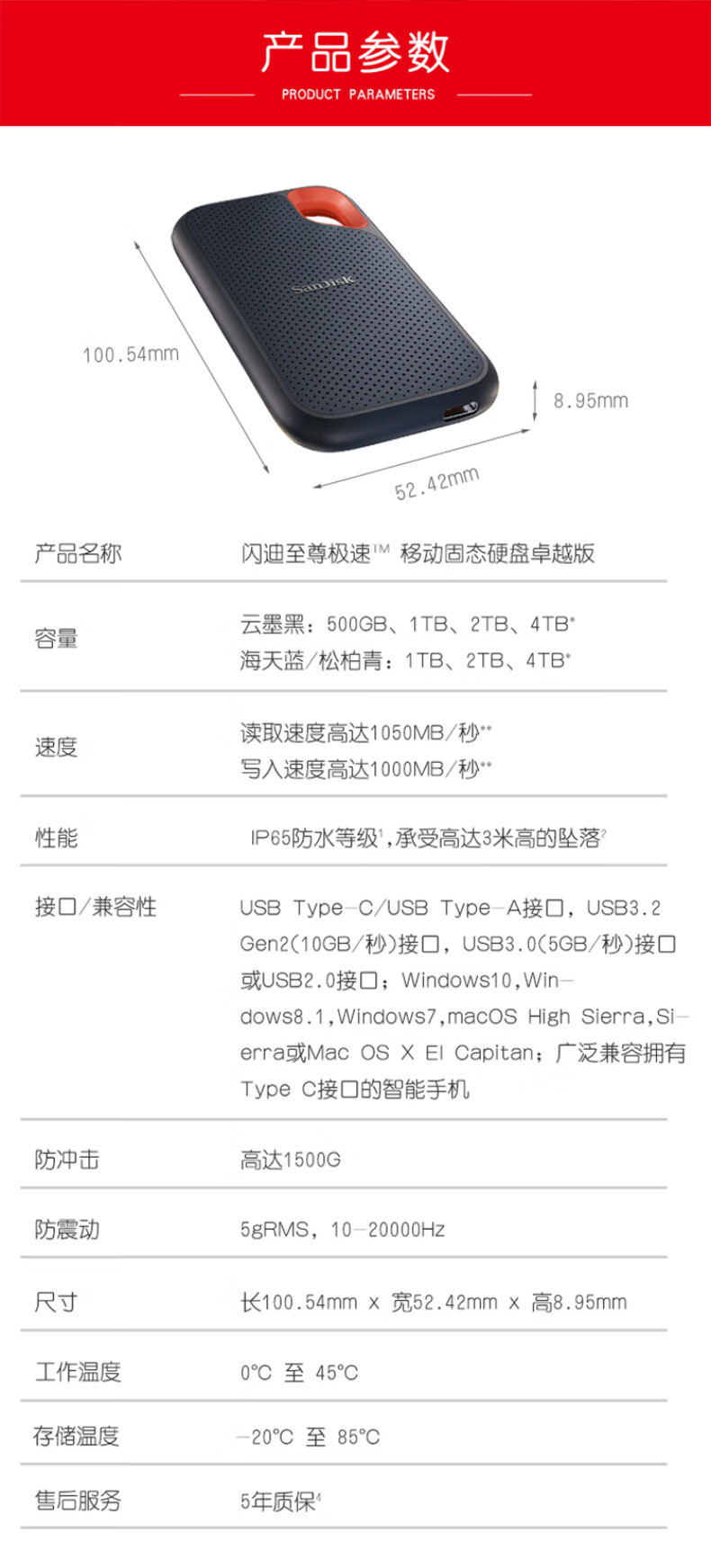 产品尺寸:长100.54mm;宽52.42mm;高8.95mm