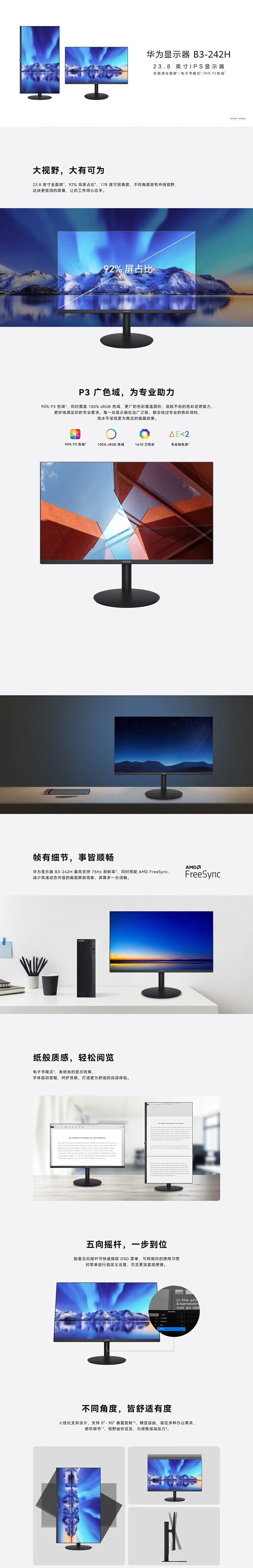 商品标题:华为(HUAWEI)B3-242H 23.8英寸显示器 海油专供(台)